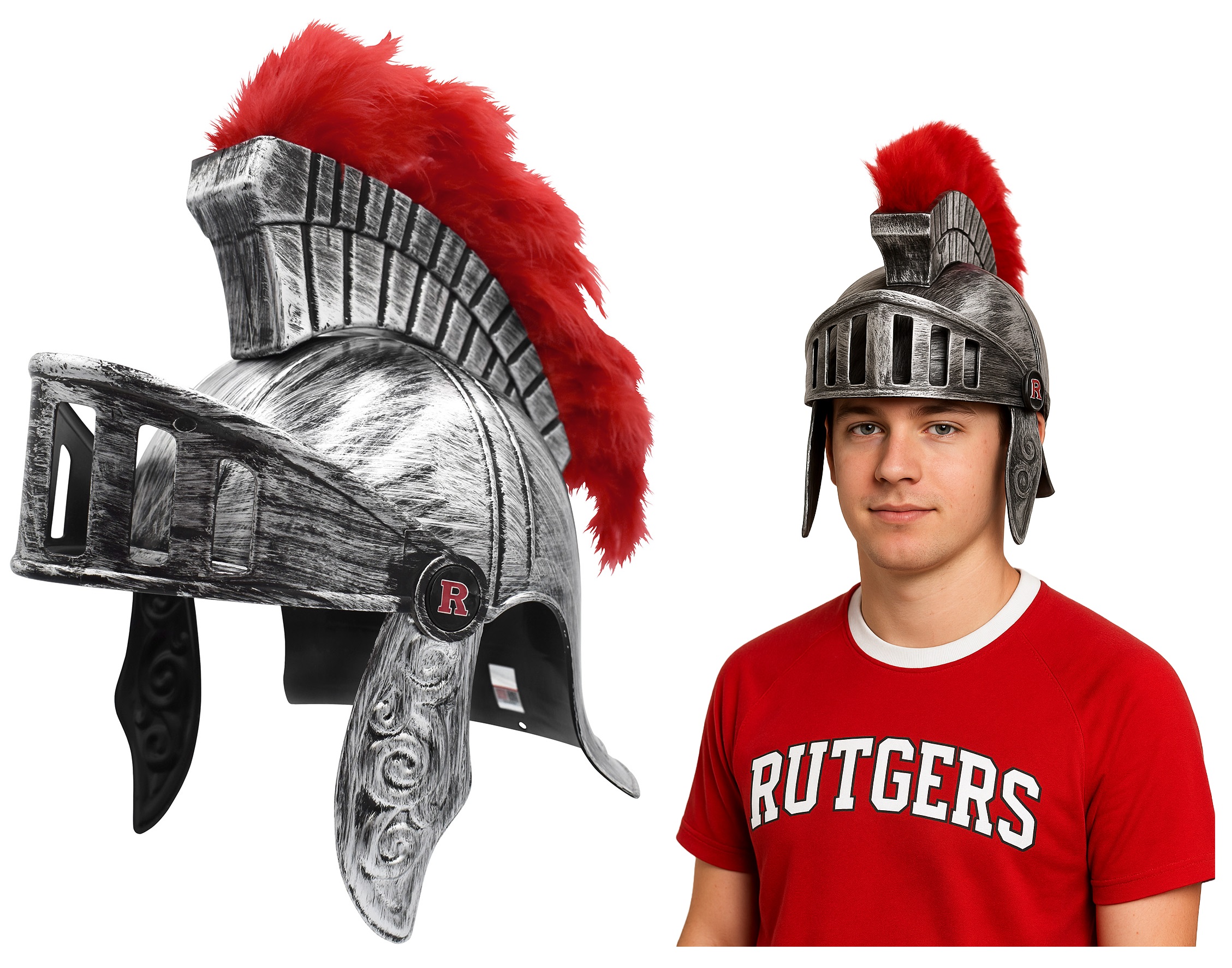 Celebrate Rutgers University pride in bold style with the Licensed Rutgers Scarlet Knight Roman Helmet by Nicky Bigs Novelties. Drawing inspiration from authentic gladiator headgear, this unisex adult helmet mirrors the grandeur of Sir Henry the Scarlet Knight, complete with thick, durable plastic construction and sliding ear guards. The inclusion of official Rutgers block âRâ motifs on each side, alongside a serialânumbered collegiate product sticker, underscores its licensed authenticity and elevates fan appeal.