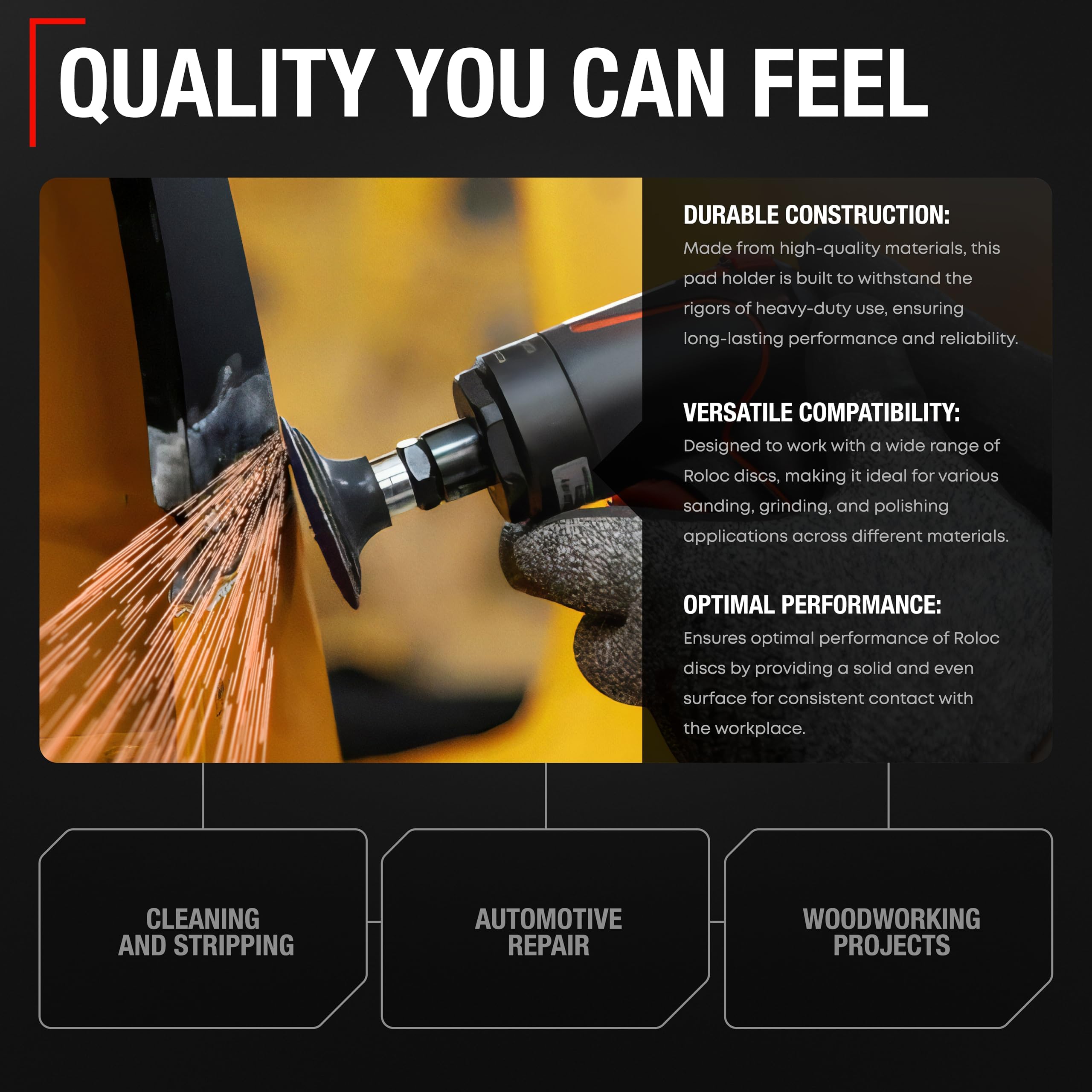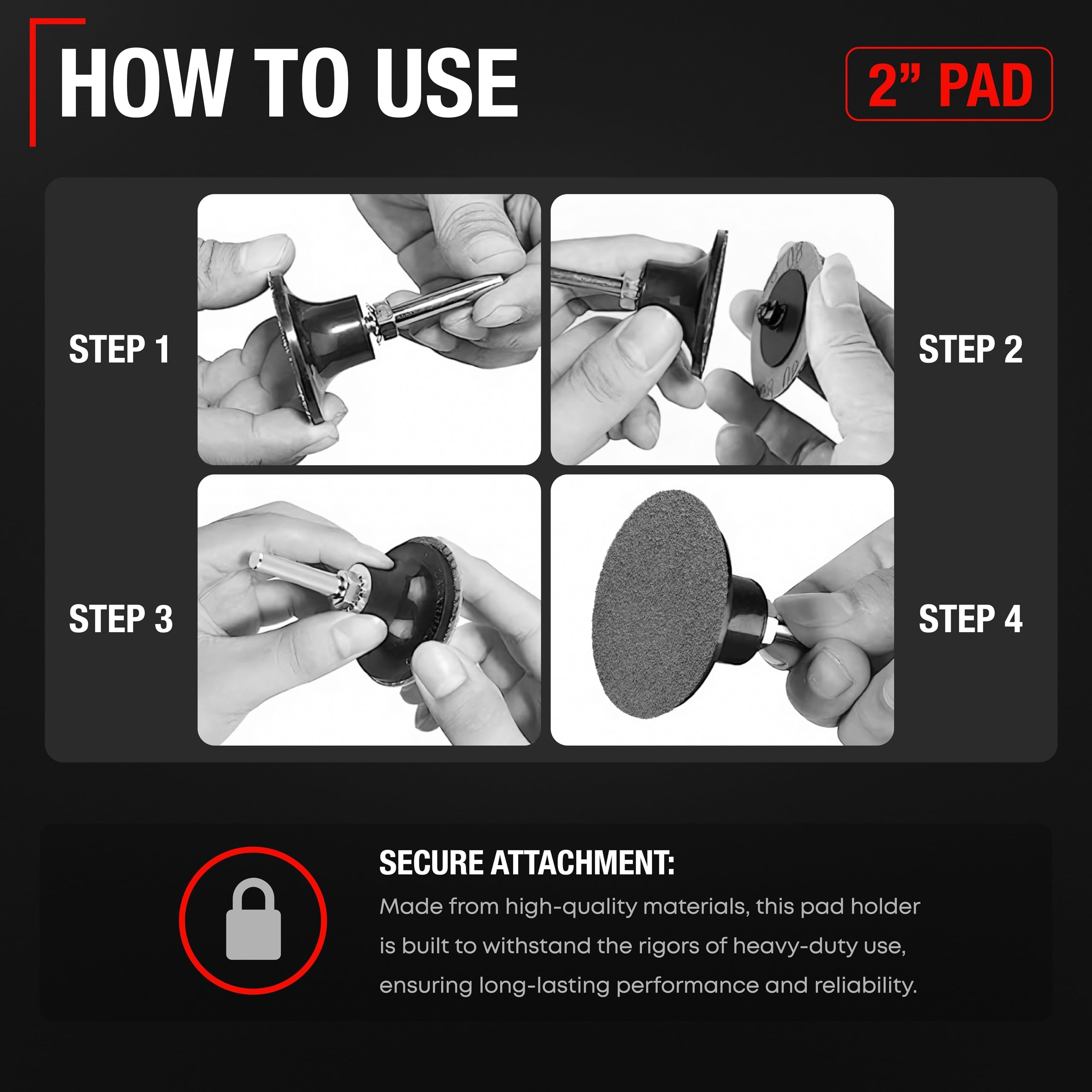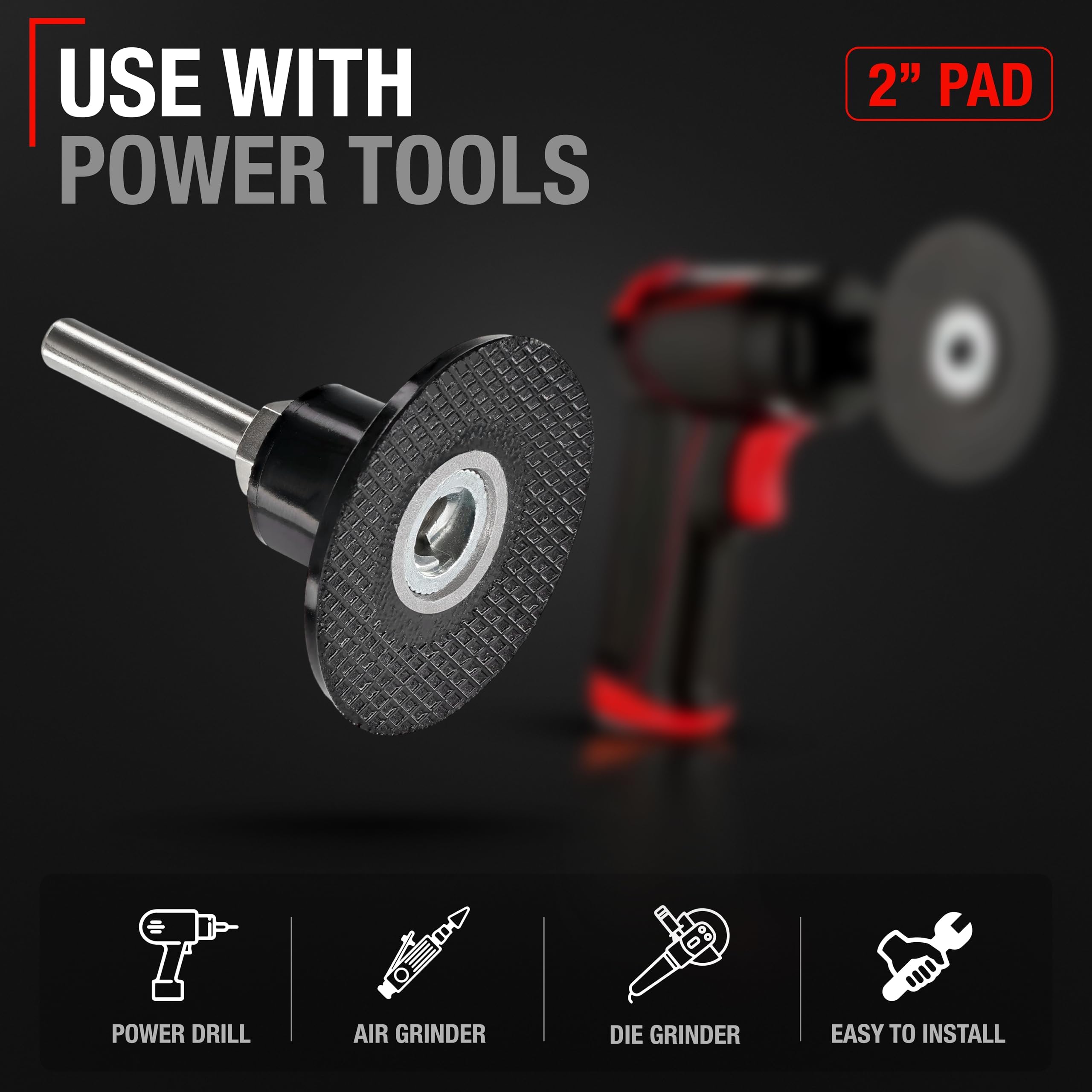 Enhance your sanding and polishing projects with this 5 Pack of 2-inch Conditioning Disc Pad Holder Assembly. Compatible with 3M Scotch-Brite brand discs, this high-quality, OEM-style pad holder assembly is designed to deliver exceptional performance and durability for a variety of applications. Featuring a 1/4"" shank and Speed-Lok TR quick-change attachment, it provides easy compatibility with a wide range of power tools, including power drills, die grinders, and air grinders. This pad holder is built for heavy-duty use, featuring a robust rubber pad and an aluminum core with a nickel-plated removable steel shank, ensuring long-lasting strength and superior performance. Whether you're sanding, polishing, or surface conditioning, this versatile holder assembly meets all your needs for both professional and DIY projects. Compatible with: Power drills Die grinders Air grinders Speed-Lok TR quick-change attachment systems 3M Scotch-Brite brand discs Constructed with high-quality materials, including a heavy-duty rubber pad, aluminum core, and nickel-plated steel shank, this disc pad holder is built to withstand wear and tear, ensuring durability and reliable performance over time. Its user-friendly design allows for quick and easy installation, making it the ideal solution for anyone looking to improve their sanding and polishing capabilities.