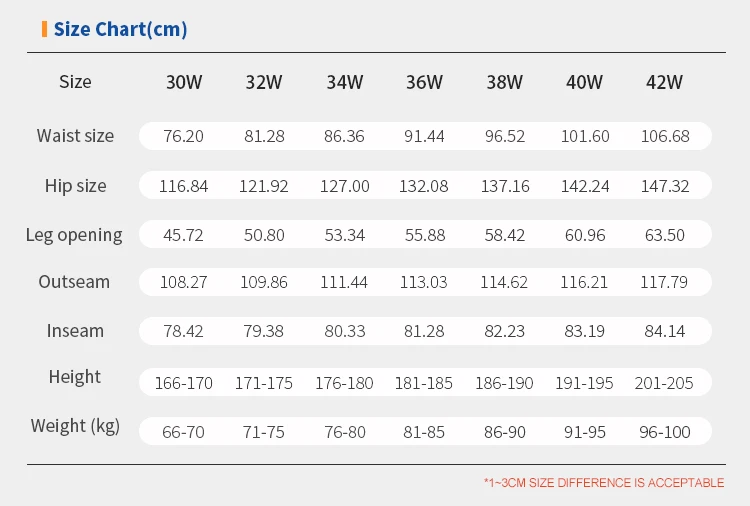 Size: 30W/32W/34W/36W/38W/40W/42W