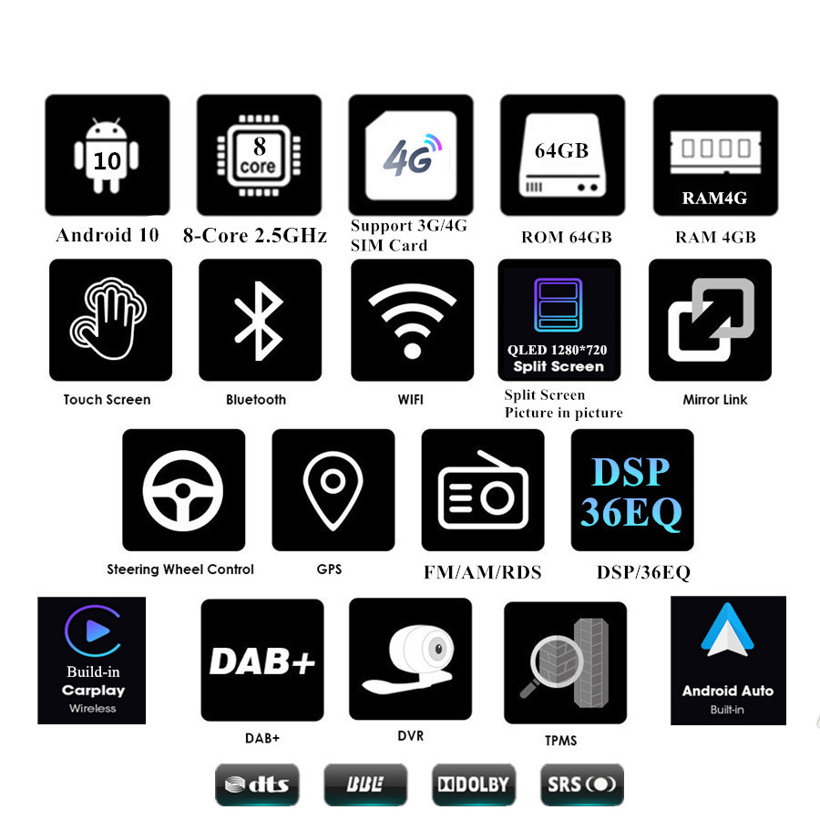 | Carplay/Android Auto | -Build-In WIFI Wireless / USB Wired Carplay And USB Wired Android Auto, No additional purchase of Carplay dongle is required. |