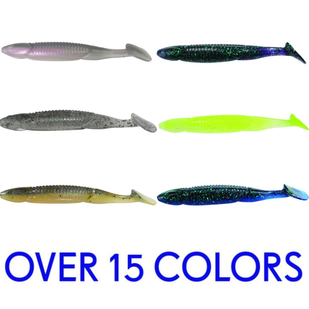 Reaction Innovation's creativity has once again developed a bait that will put fish in the boat when others won't. The Skinny Dipper is a soft plastic bait that can be effective in and around all types of structure. When you're faced with vegetation you can rig the Skinny Dipper weedless and swim it over grass beds or add weight to the hook and swim it through submerged weeds. The slender design of the Skinny Dipper coupled with the paddle tail creates a vibration in the water that bass cannot resist. The Skinny Dipper can also be deadly fished on a Carolina rig over humps and creek channels with grass and brush. The durability and size of the Skinny Dipper allows a hook size up to a 6/0 superline hook. For a different look, try the Reaction Innovations Skinny Dipper, you won't be disappointed.