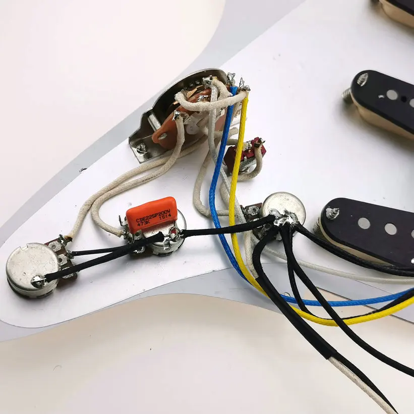 Mediate : 6.8K Bridge : 7.5K 11 screws US size pickguard ,High-quality five-speed switch, 3pcs 250K potentiometer, orange 473 200V capacitor, Stratocas David Gilmour 7-Way type fully loaded pickguard