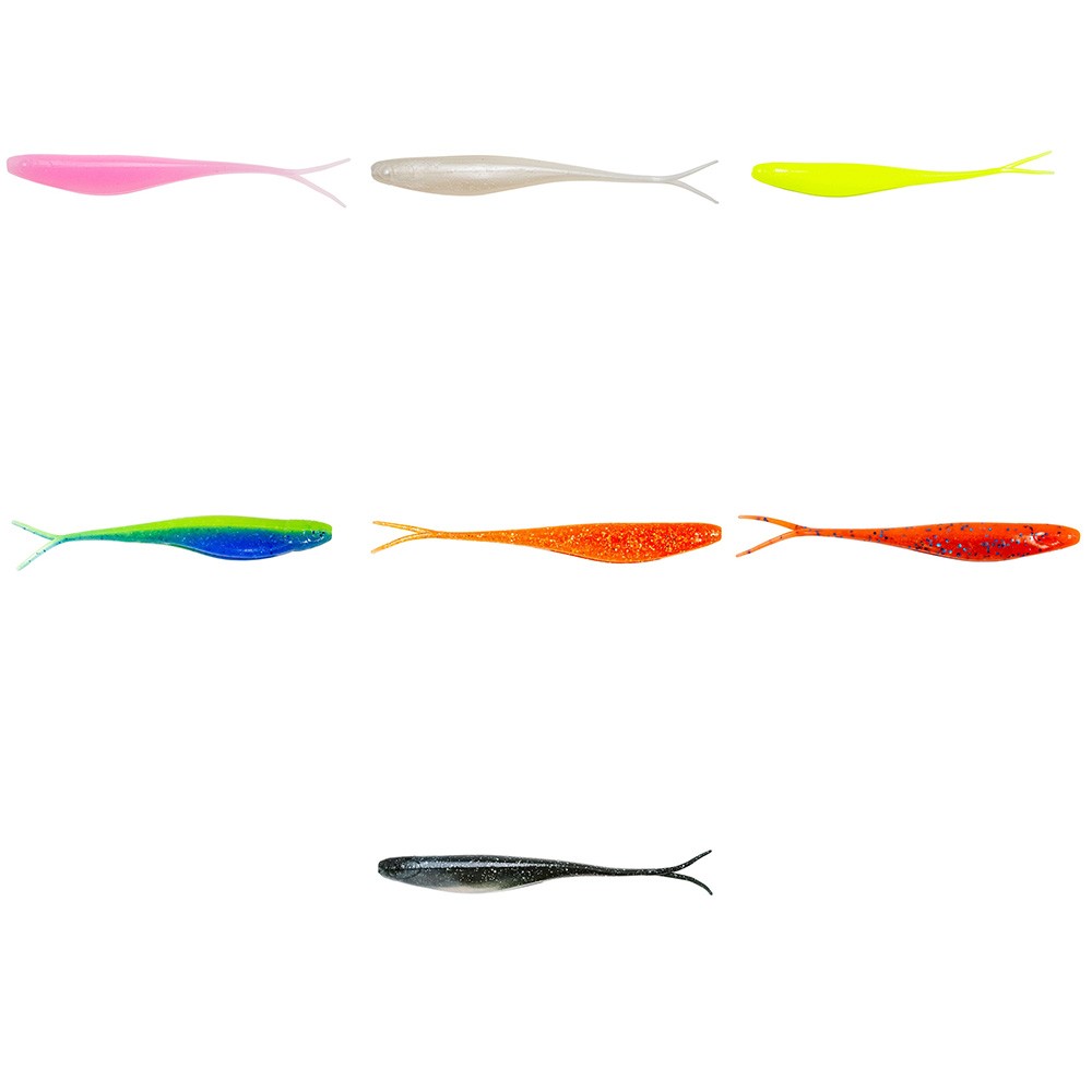 A super-lifelike, salt-impregnated soft jerkbait with a lively, split-tail design that perfectly emulates erratic baitfish action, Jerk ShadZ can be rigged weightless to achieve a slow, flutter presentation, or bottom bounced on a weighted hook or jighead. The 7" Jerk ShadZ is a deadly search and reaction bait for stripers, bull reds, snook, tarpon, cobia, pike, and musky.