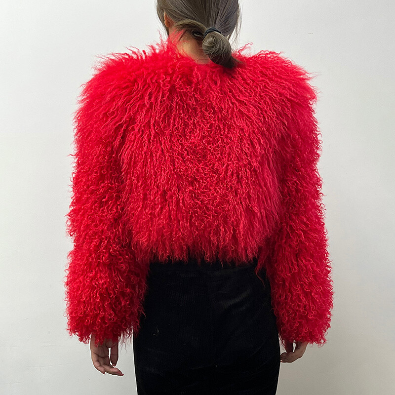 Women 100% Real Mongolian Lamb Fur Short Coat Real Curly Fur Jacket Warm Outwear
