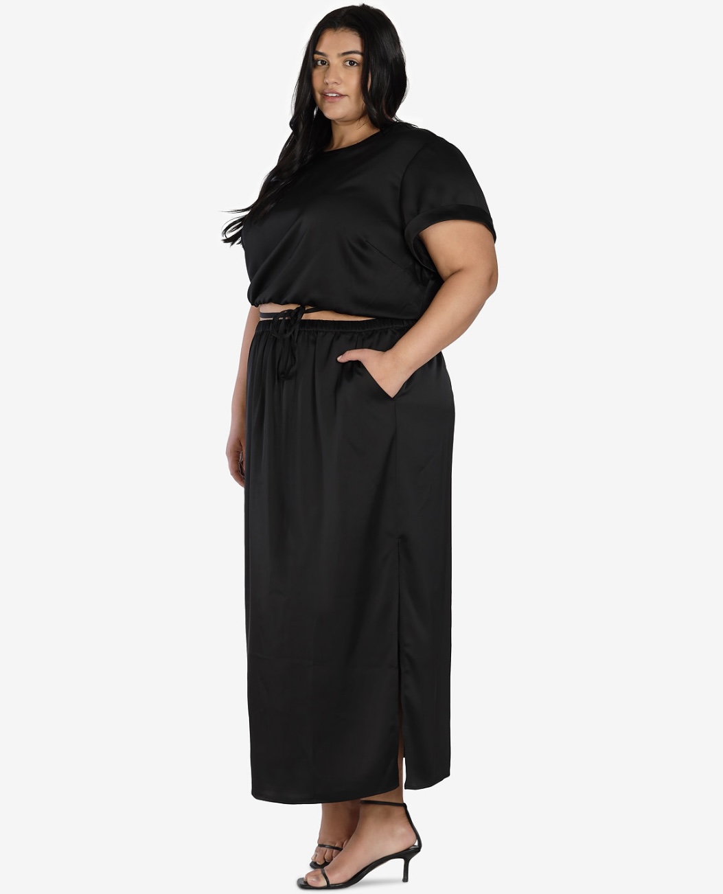 Bar III Women's Nicole Williams English Satin Maxi Skirt Black Plus Size 2X