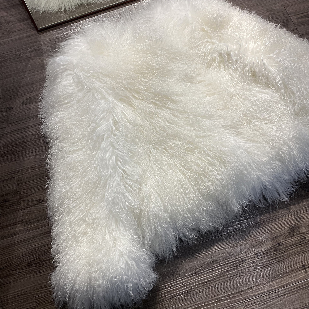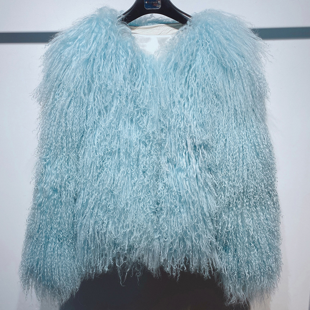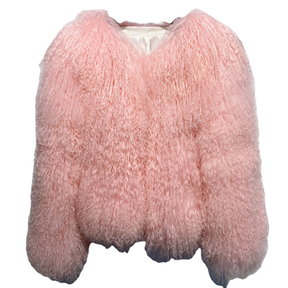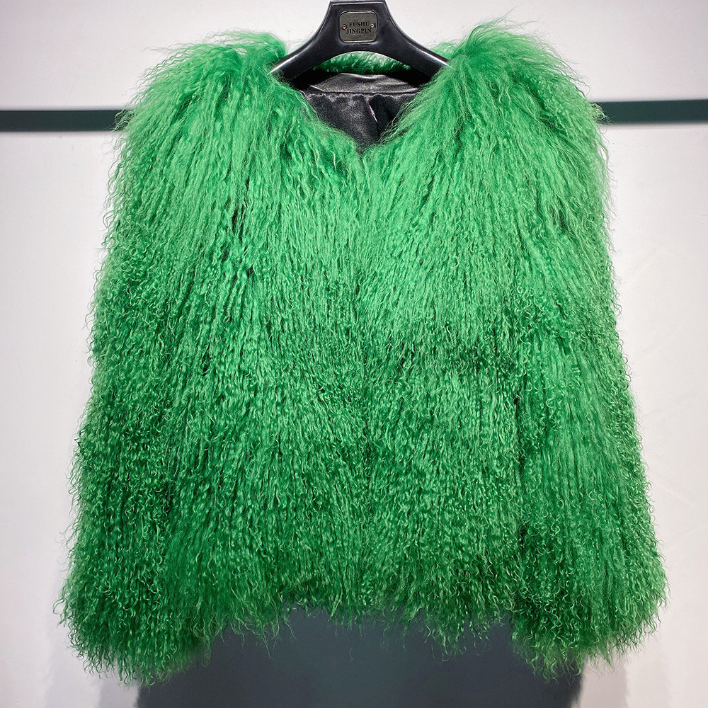 Women Cropped 100% Mongolian Fur Coat Solid Warm Luxury Fashion Winter Jacket
