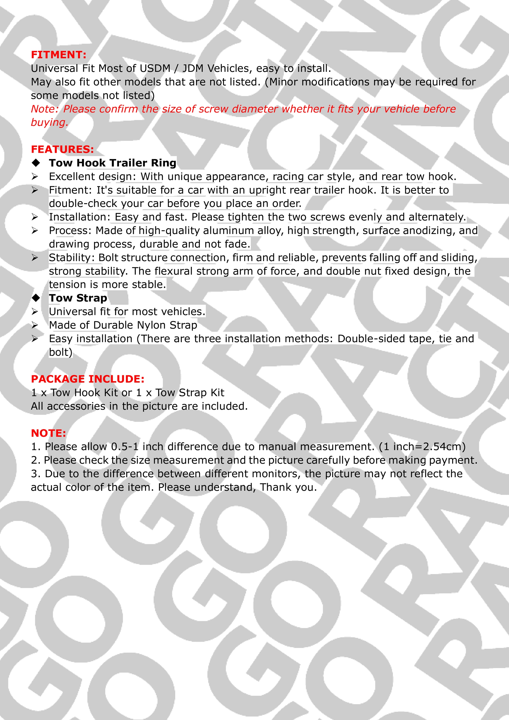Universal JDM Racing Car Rear Tow Hook Trailer Ring Tow Strap For Honda Civic