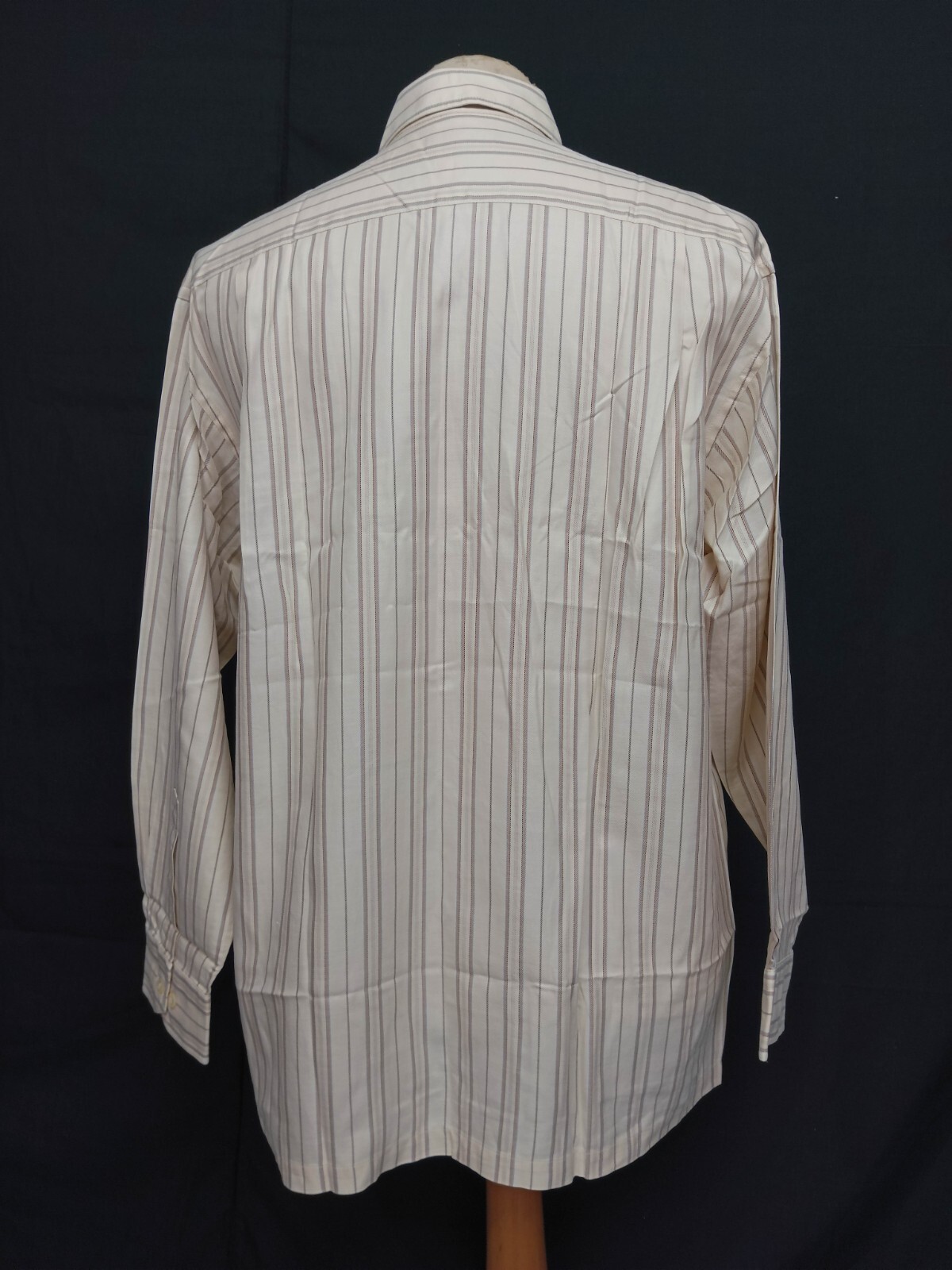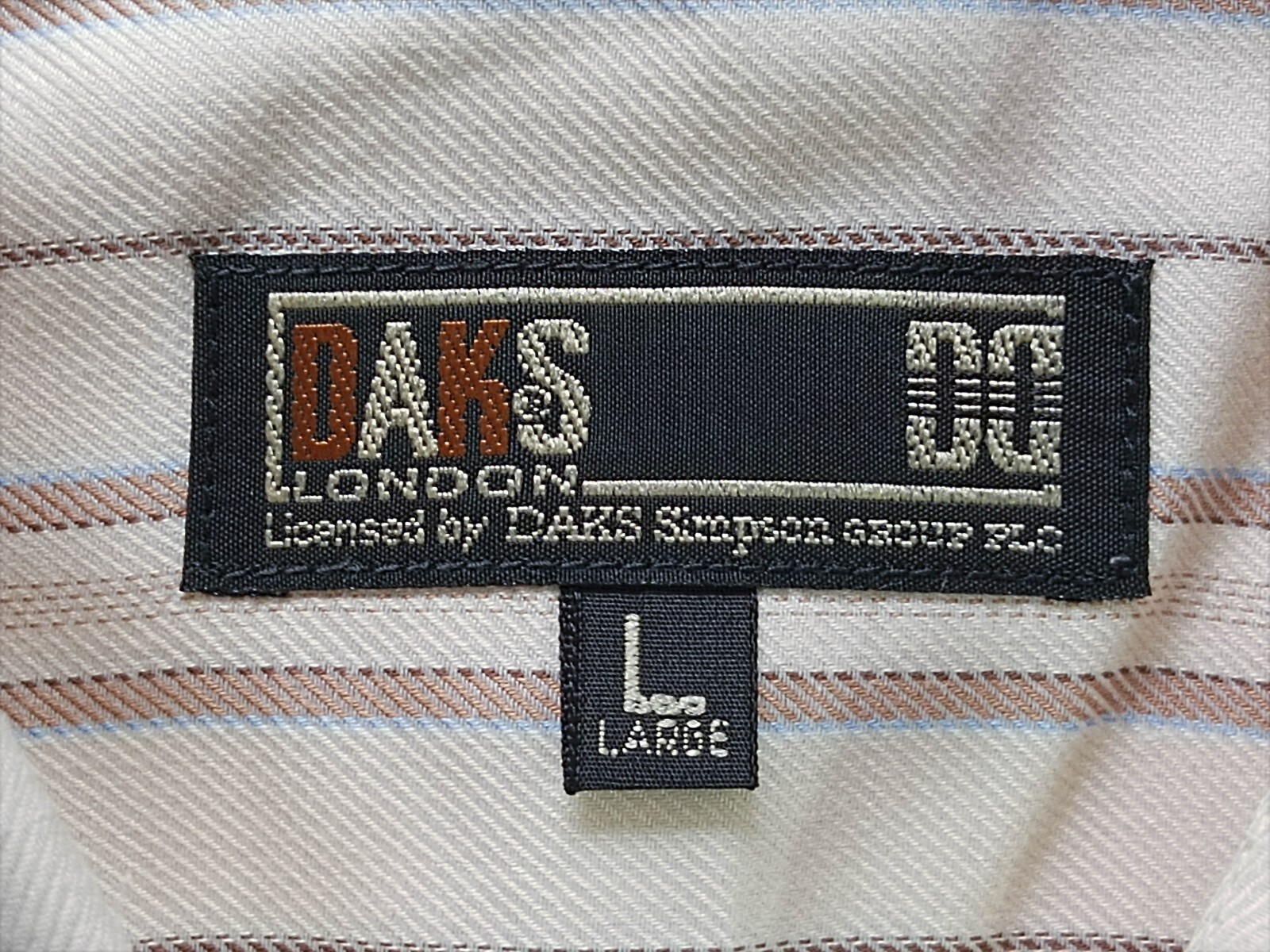Awesome DAKS London men's casual shirt authenticity guaranteed. Check out cool and awesome shirt long sleeves with buttons front. The shirt has point collar, single chest pocket on left with 7 emboss buttons closure on front. The color is beige, blue, brown with striped pattern. Fabric is 100% cotton. The shirt is pre-owned still in excellent condition no holes, tears, stains. It has already laundered clean and fresh ready to wear. Don't miss out awesome designer shirt.