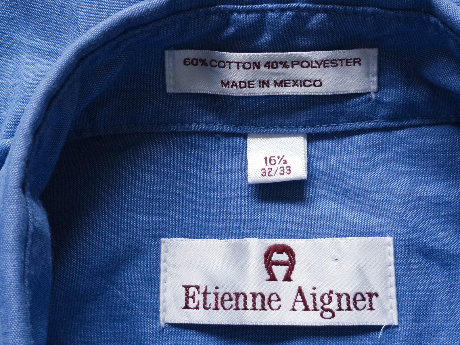Luxury Etienne Aigner blue men's dress shirt authenticity guaranteed. Check out perfect designer shirt long sleeves with buttons front. The shirt has button-down collar, single chest pocket on left with 7 buttons closure on front. The color is blue with solid pattern. Fabric is 60% cotton, 40% polyester. The shirt is pre-owned still in good condition no holes, rips, stains. It has already laundered clean and fresh ready to wear. Don't miss out luxury and awesome dress shirt.