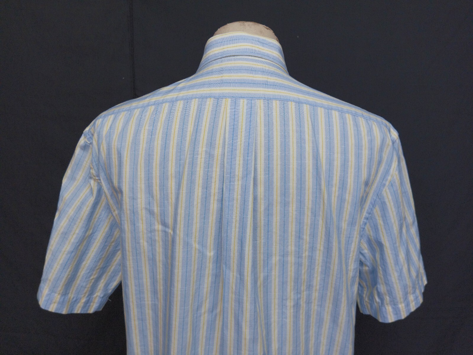 Awesome Rodrigo men's casual shirt authenticity guaranteed. Check out cool and awesome shirt short sleeves with buttons front. The shirt has point collar, single chest pocket on left with 7 buttons closure on front. The color is blue, white, yellow with striped pattern. Fabric is 100% cotton. The shirt is pre-owned still in excellent condition no holes, tears, stains. It has already laundered clean and fresh ready to wear. Don't miss out awesome designer shirt.