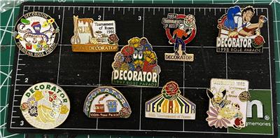 No Float Decorators = No Floats. No Floats, and no one cares about the Rose parade its just that simple. Fantastic lapel pin issued to celebrate the the yearly Parade before the Rose Bowl. The backs sometimes have some slight residue from the frame. If you're interested in any other pins from this year contact me.
