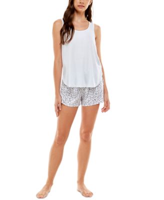 Roudelain Tank Top & Shorts Pajama Set, White, XLarge