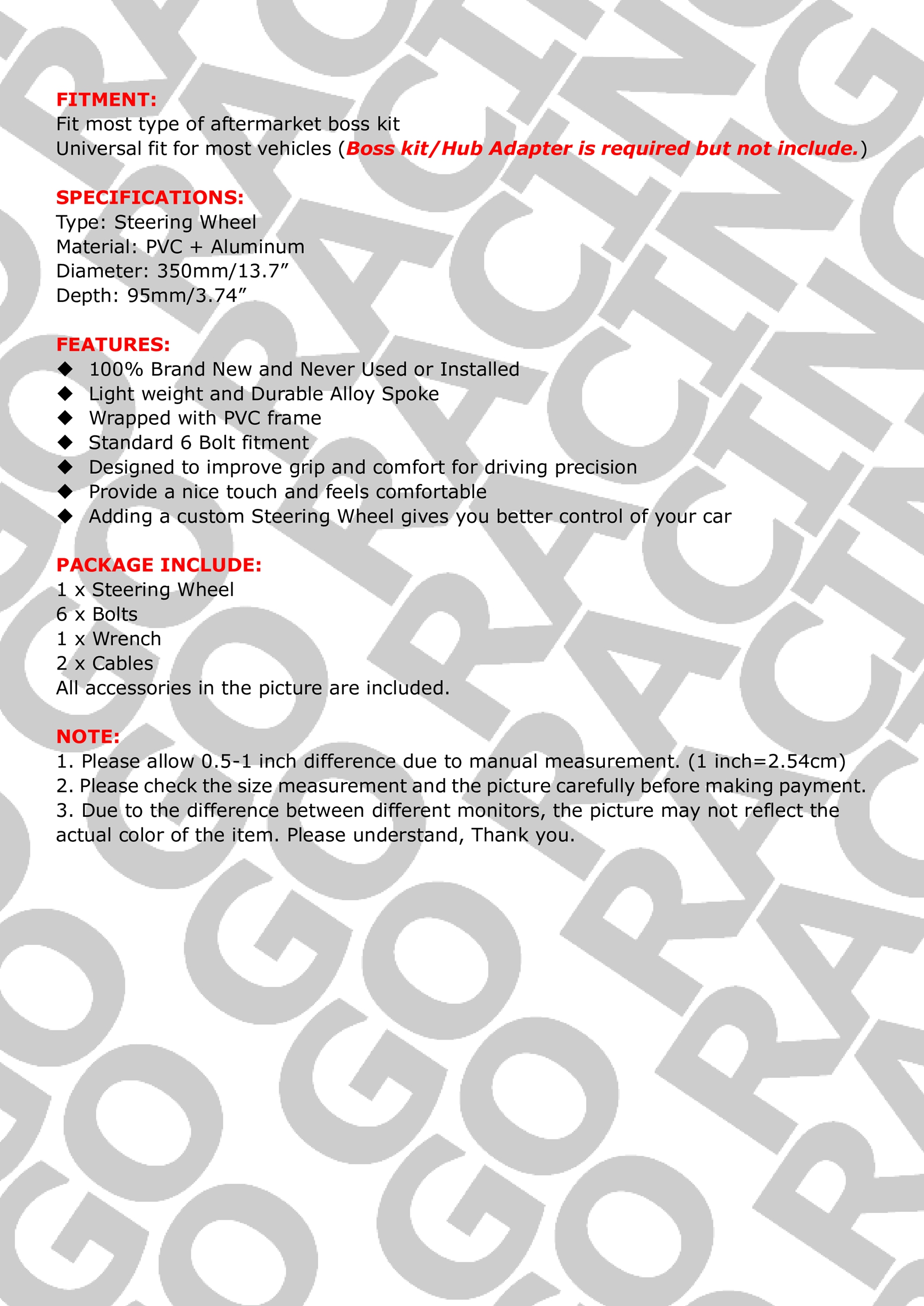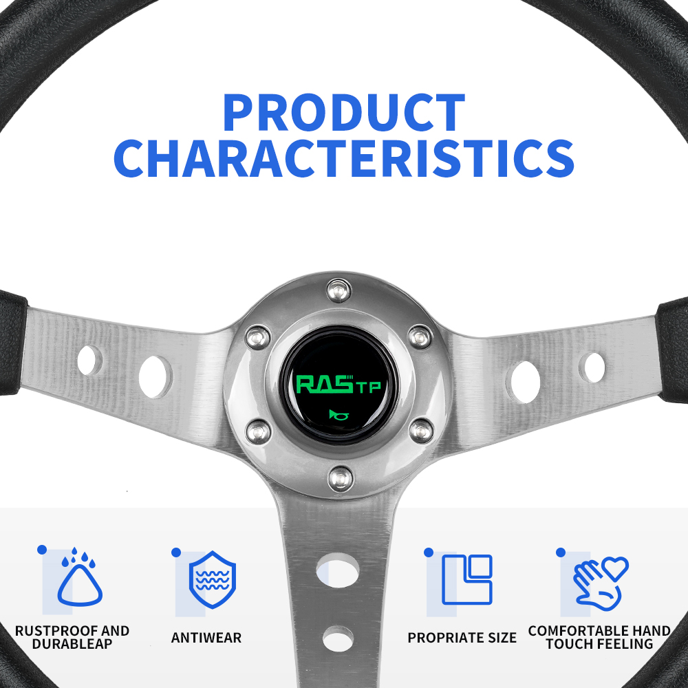 14INCH Universal Drifting Racing Steering Wheel Aluminum Spokes Deep Dish 6 Bolt