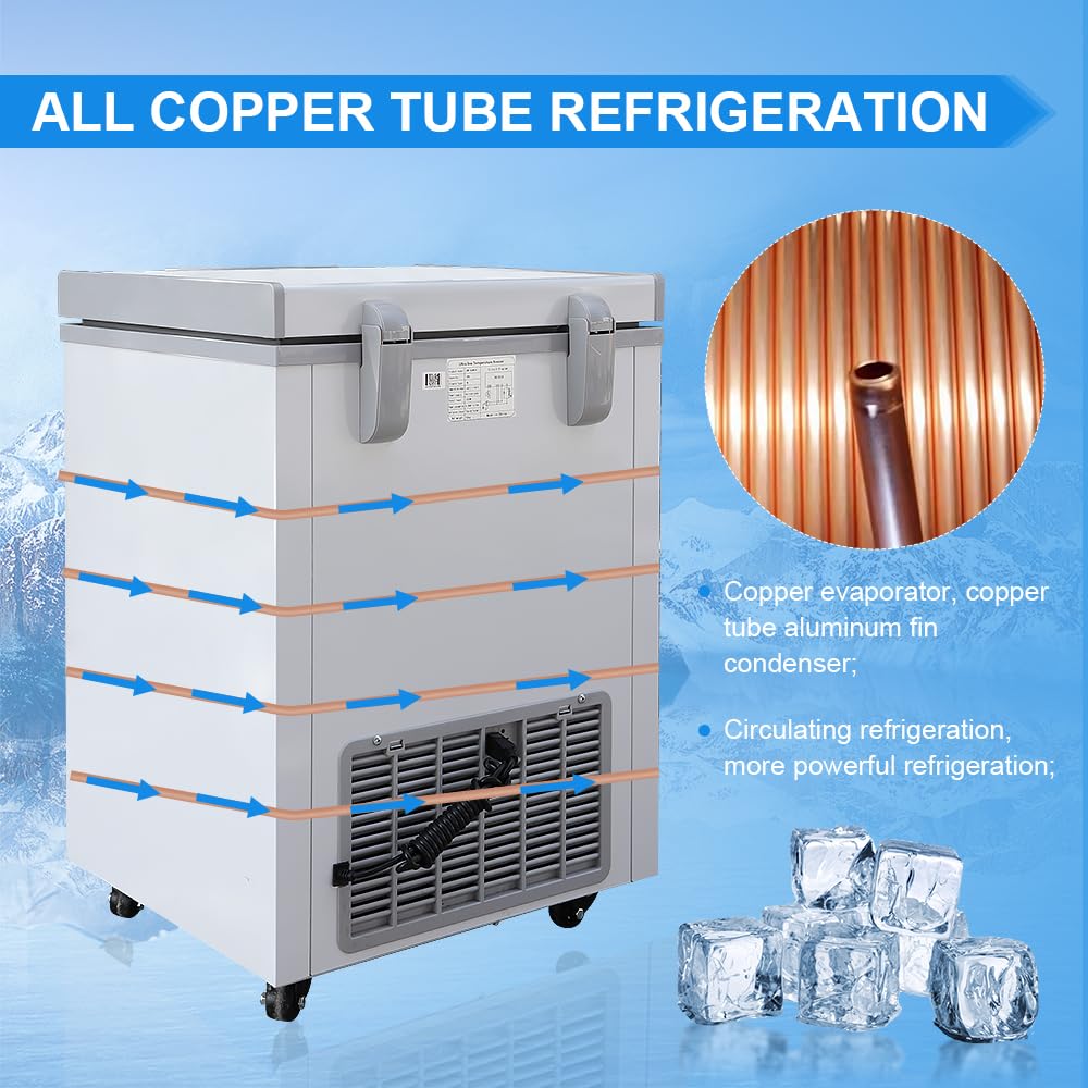 【FULL COPPER TUBE REFRIGERATION SYSTEM】Copper tube evaporator and copper tube condenser, 304 stainless steel liner; double door seal, 120mm thick insulation layer, long service life