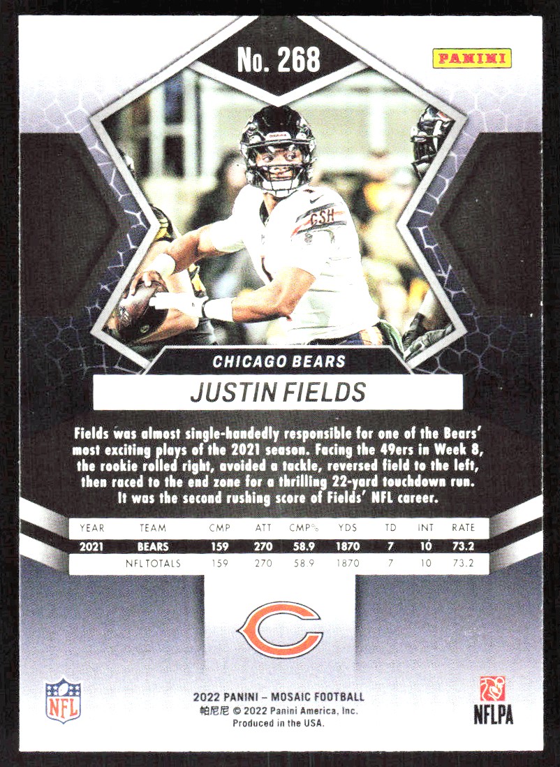 2022 1525A Panini Mosaic NATIONAL PRIDE Justin Fields Chicago Bears #268
