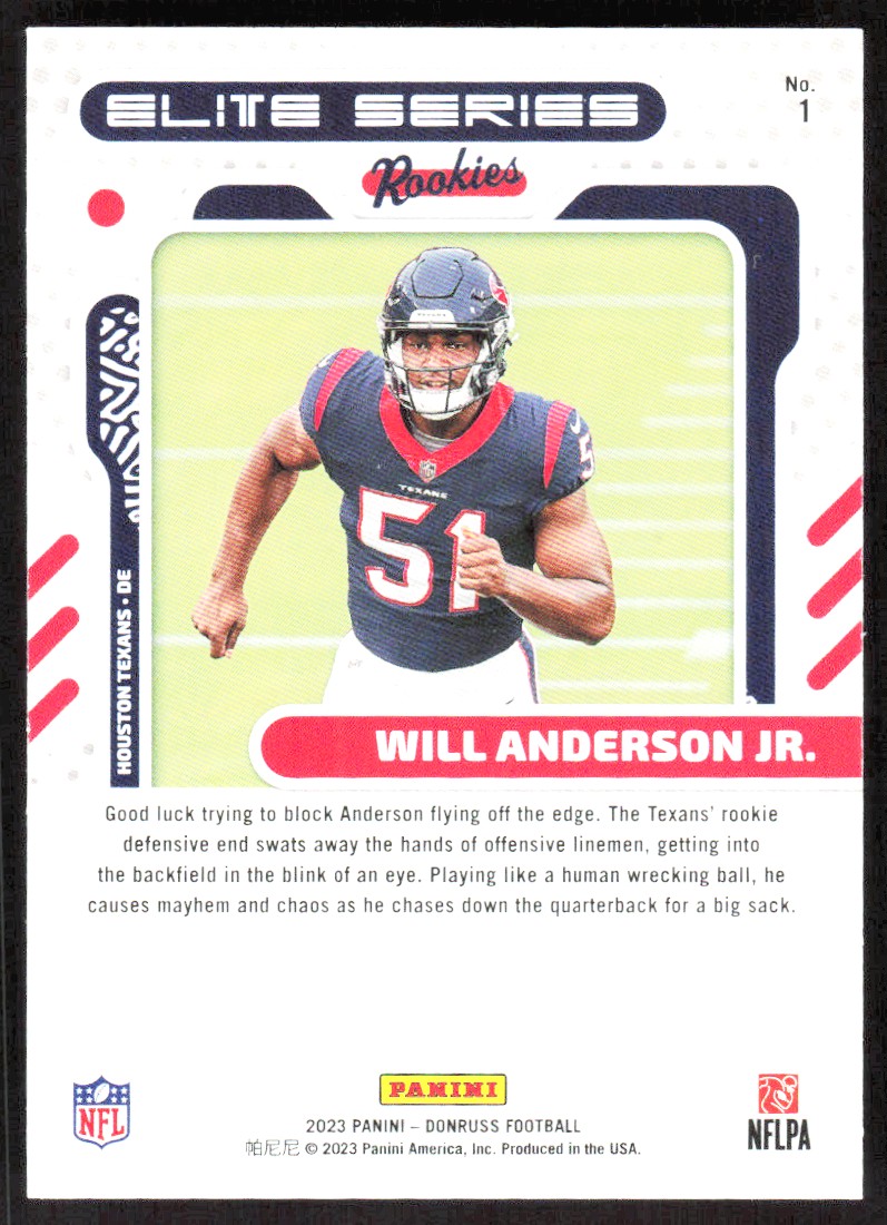 2023 2294A Donruss ELITE SERIES ROOKIES Will Anderson Jr. Rookie Houston Texans