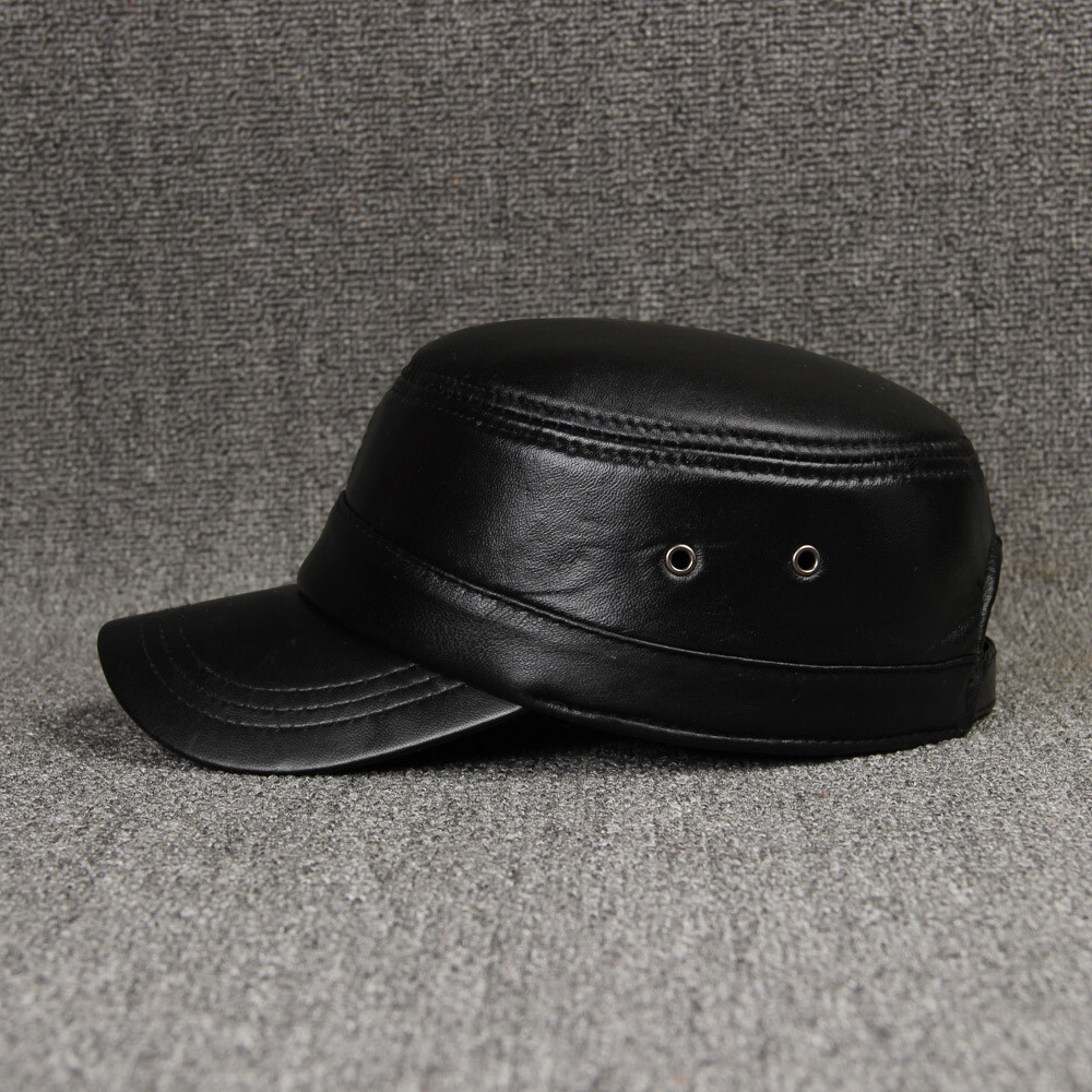 Cadet Cap Black Genuine Sheepskin Leather Adjustable Biker Motorcycle Flat Hat/