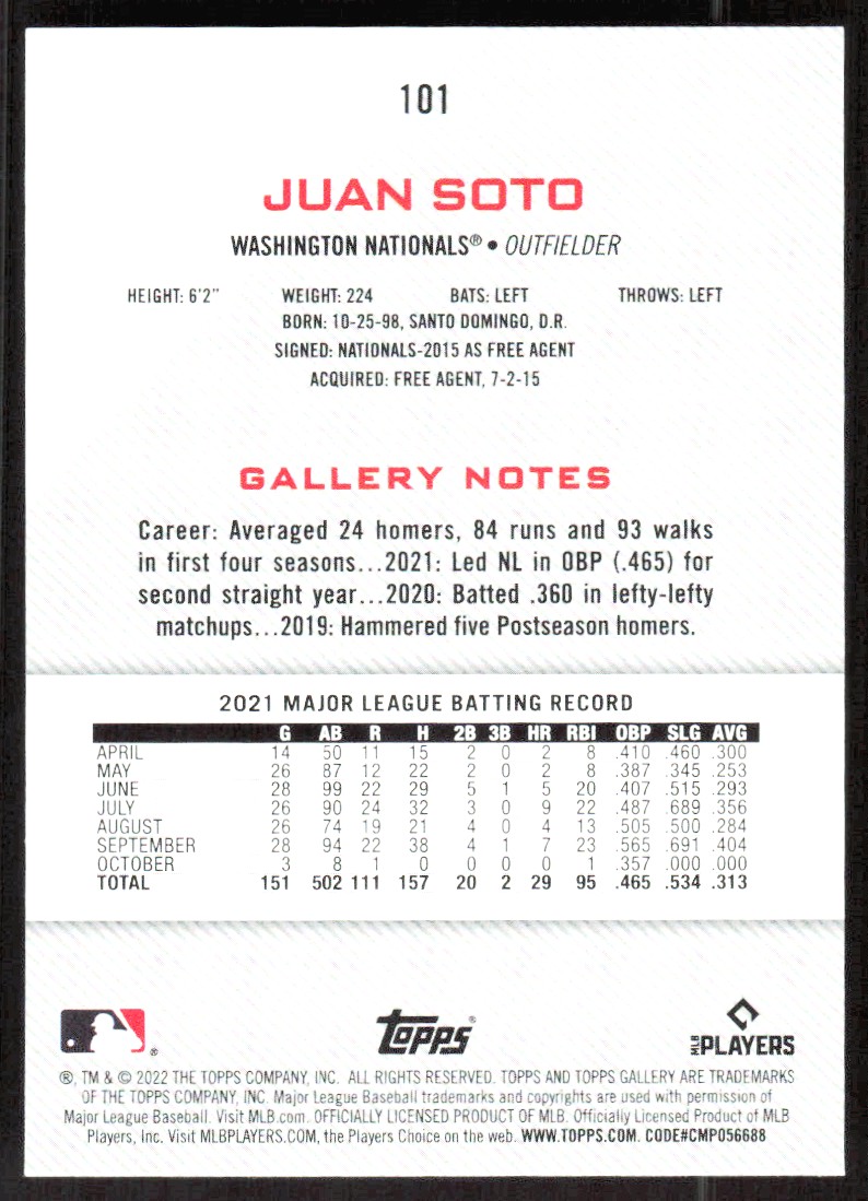 2021 3155A TOPPS GALLERY Juan Soto Washington Nationals #101