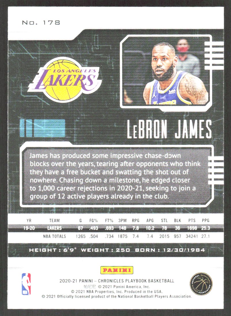 2020-21 4339A Panini Chronicles PLAYBOOK LeBron James Los Angeles Lakers #178