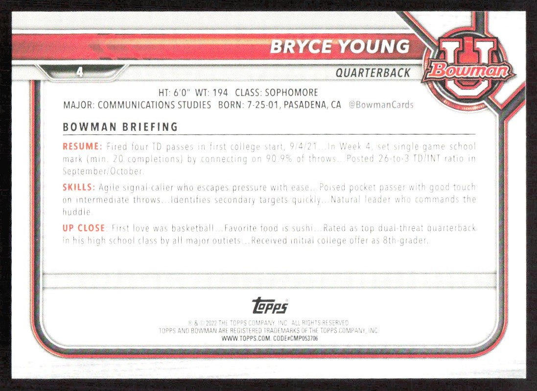 2022 6482A Bowman University Bryce Young Carolina Panthers #6