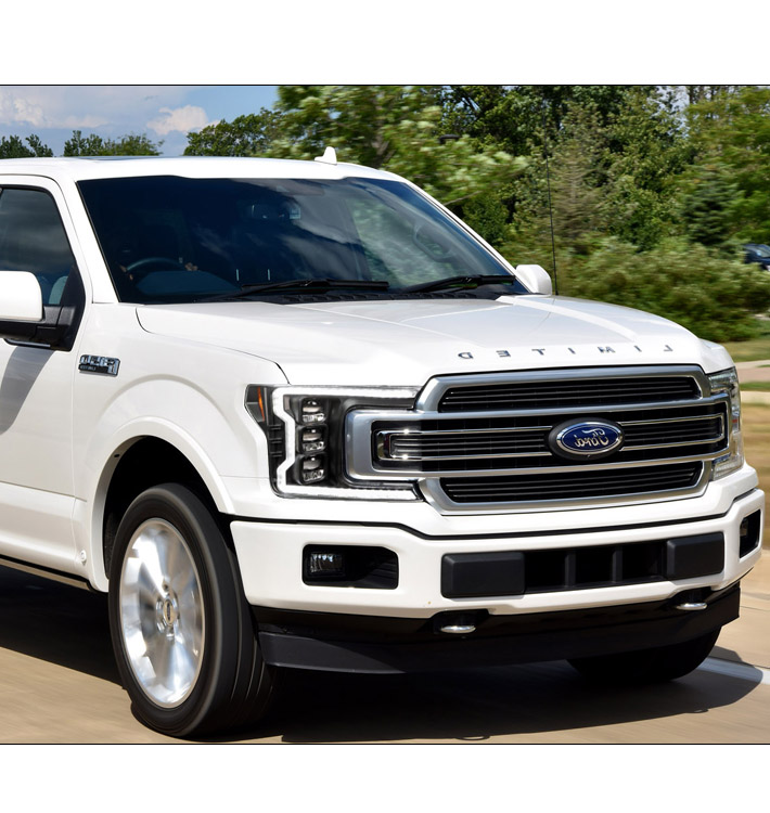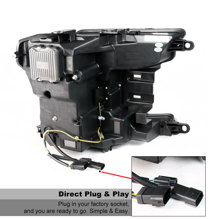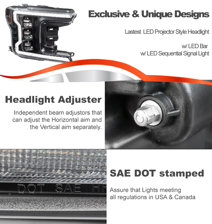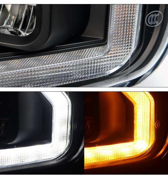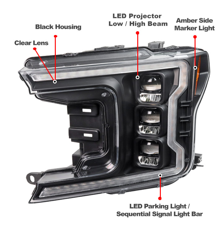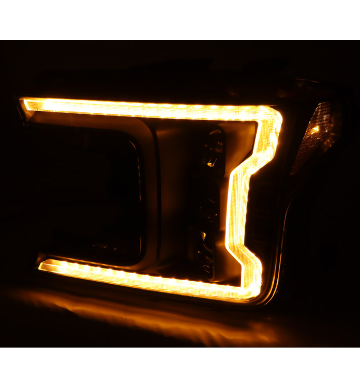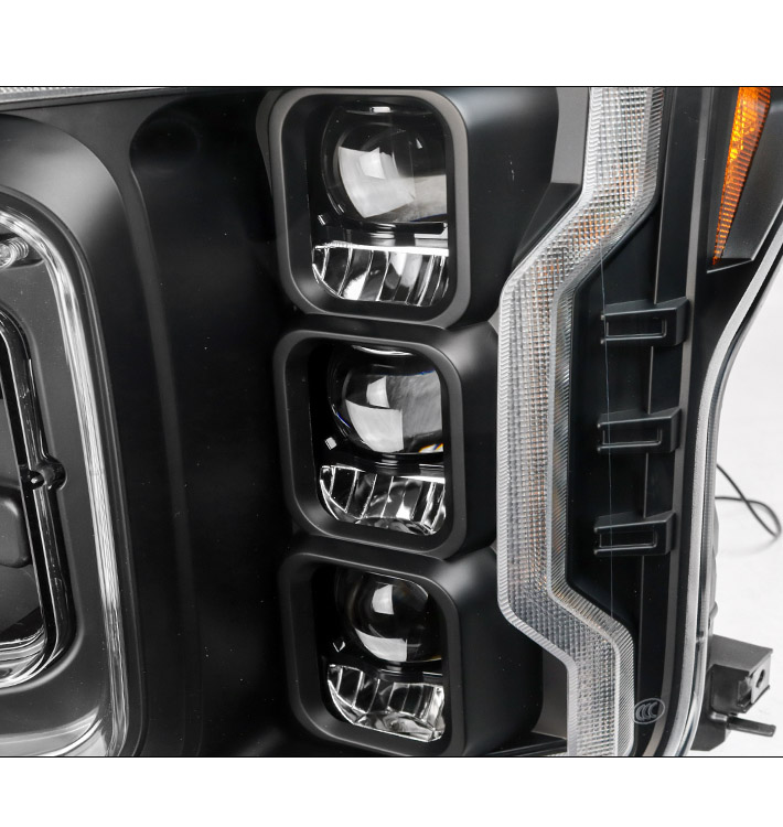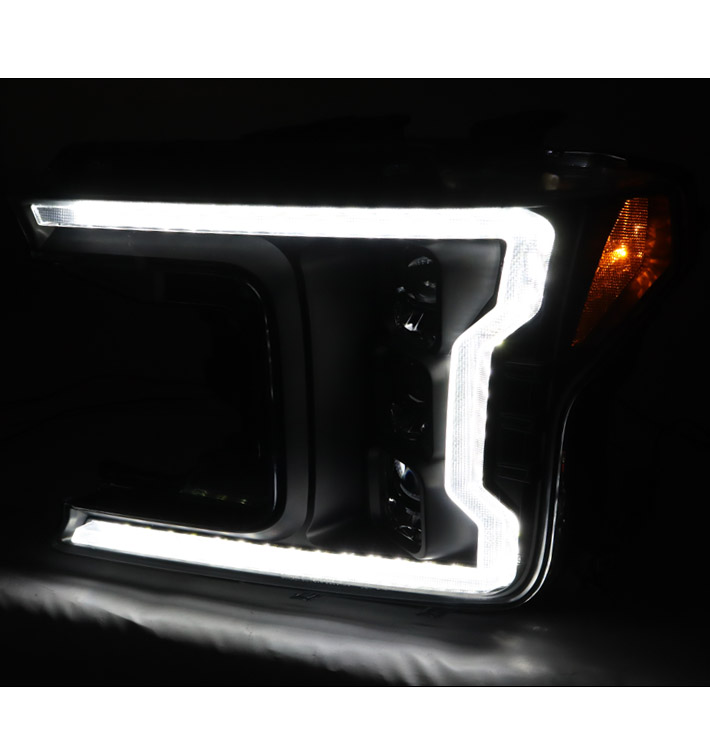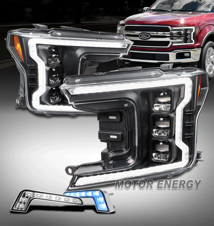 For 2018-2020 Ford F-150 Switchback Signal Full LED Trio Projector Headlights w/6.25" Blue LED DRL - Black