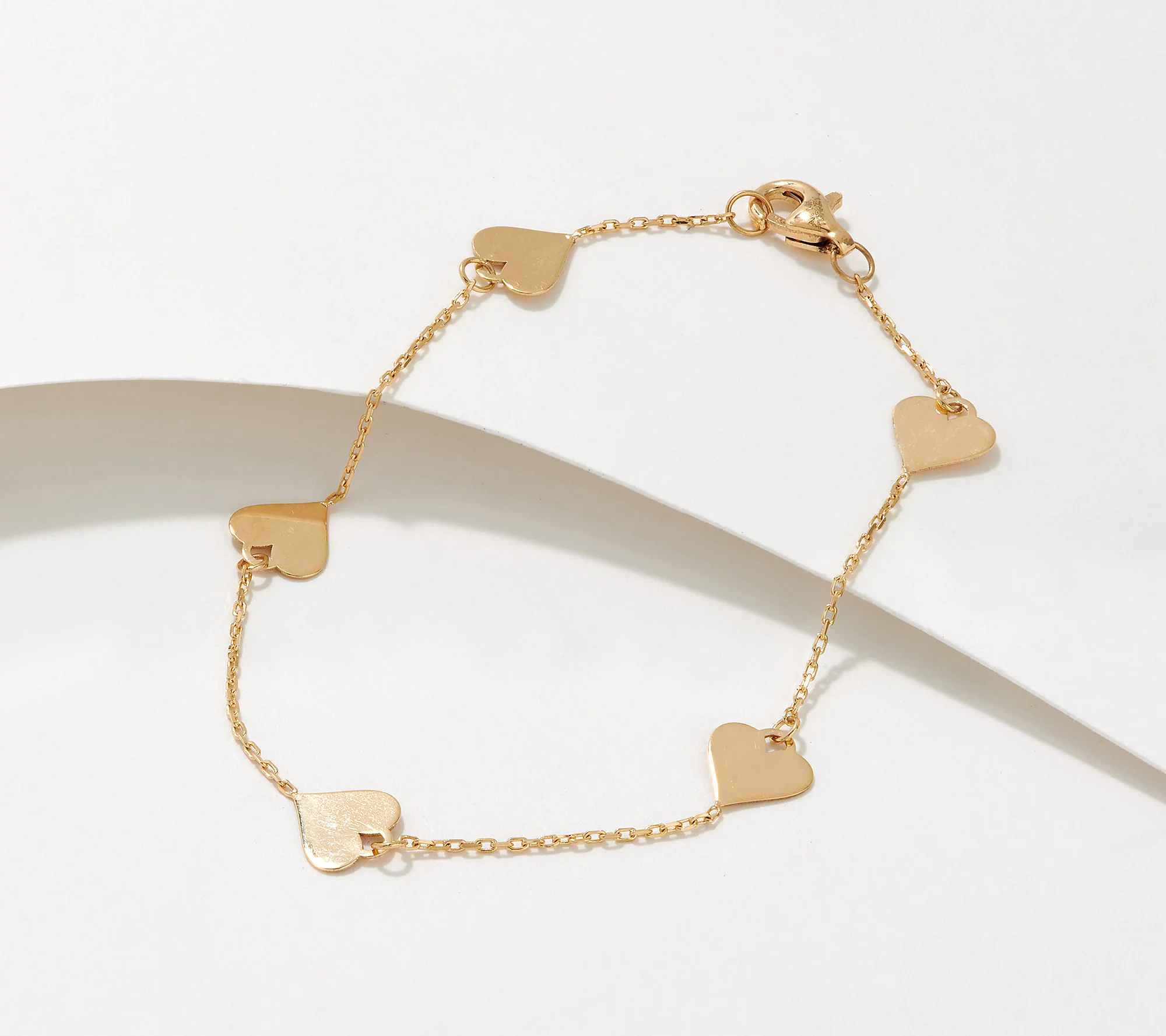 Here's something to love -- this 14K gold bracelet is brimming with positive personality, thanks to five heart motif stations throughout. J395337