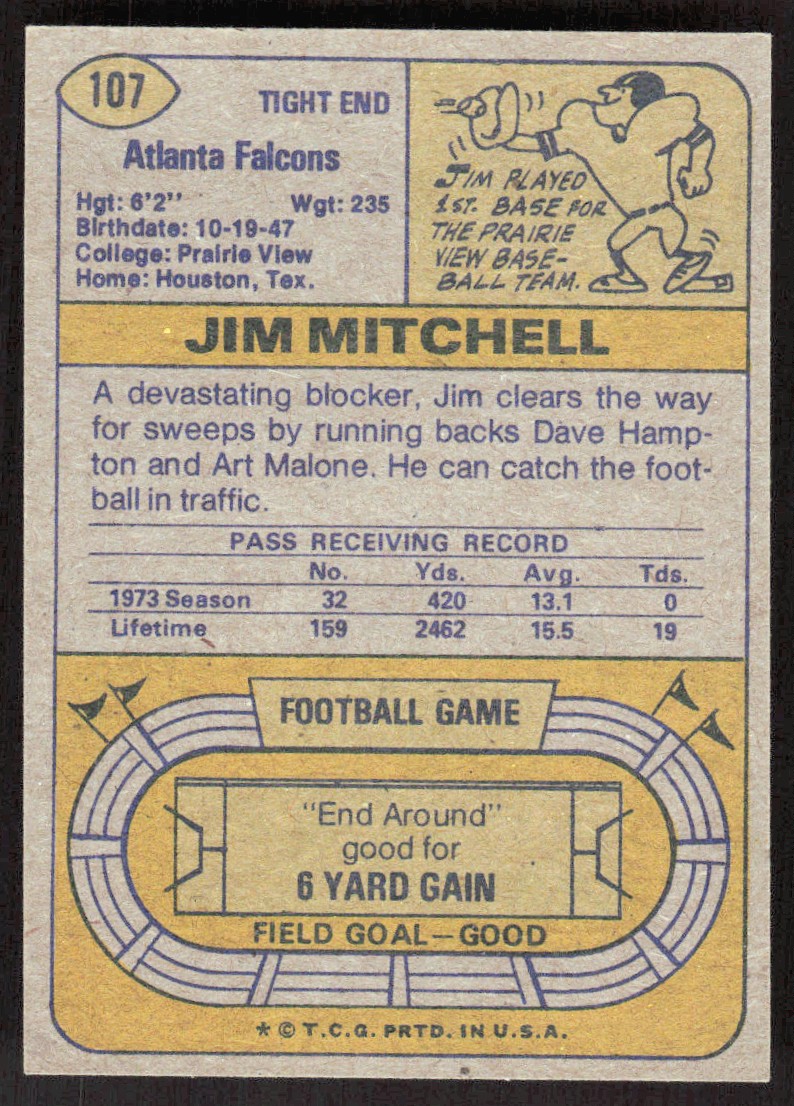 1974 7901A Topps Jim Mitchell Atlanta Falcons #107