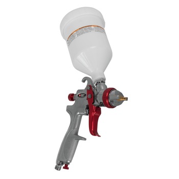 Gravity feed canister allows visibility, easy clean-up, and minimizes the waste of material left in canister