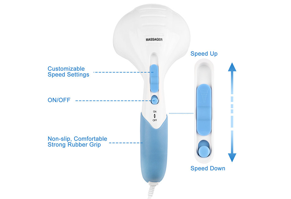 - * DOUBLE HEADS MASSAGER:Two-head design is great for use on areas such as neck,back,legs and foot. And perfect for athletes,the elderly,and anyone experiencing aches and pain.