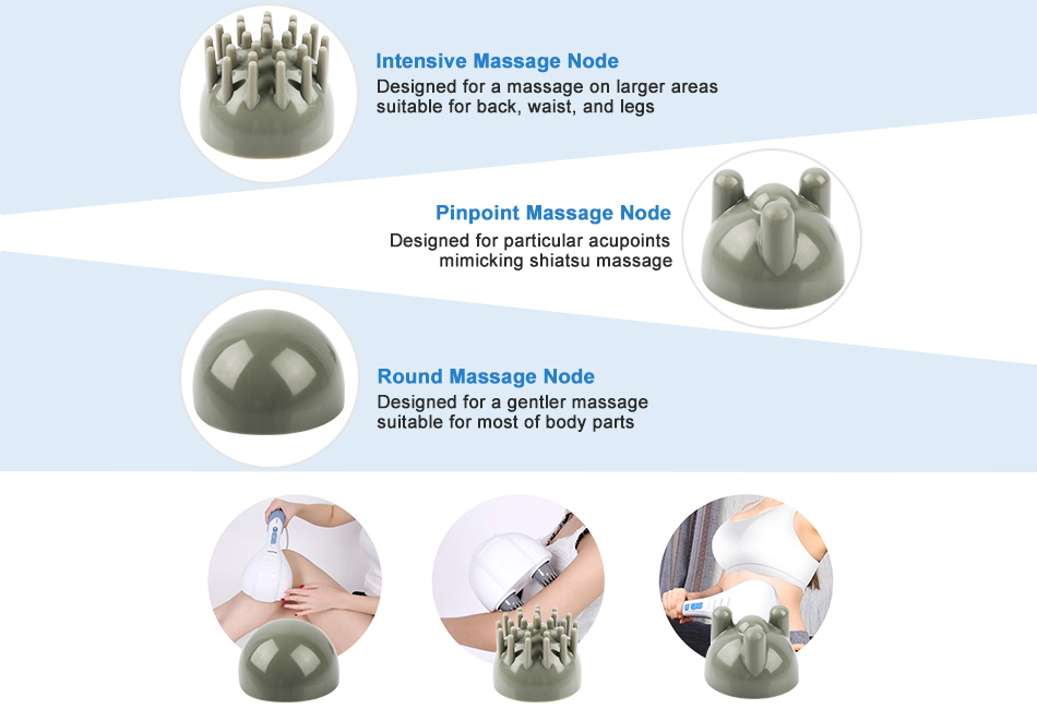 - * 6 INTERCHANGEABLE ATTACHMENTS:Our electric handheld massager can help relax and relive pain on neck,shoulder,back,arms,legs,feet,calf and sore muscles. You can change different heads to target a specific area or to customize your massage sessions.
