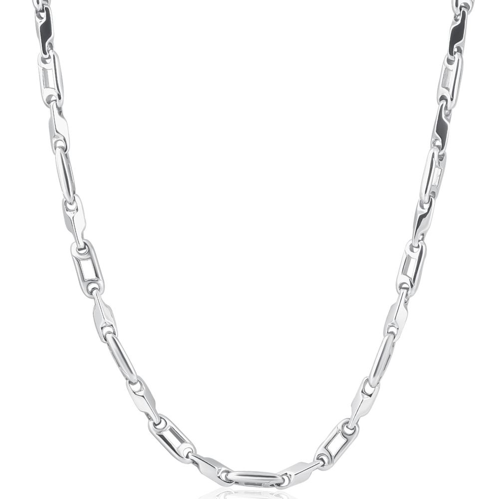 Men's high quality solid 14k white, yellow, rose gold or platinum chain is handmade in our USA factory. The clasp is durable and meant to last a lifetime. The chain necklace measures 22"