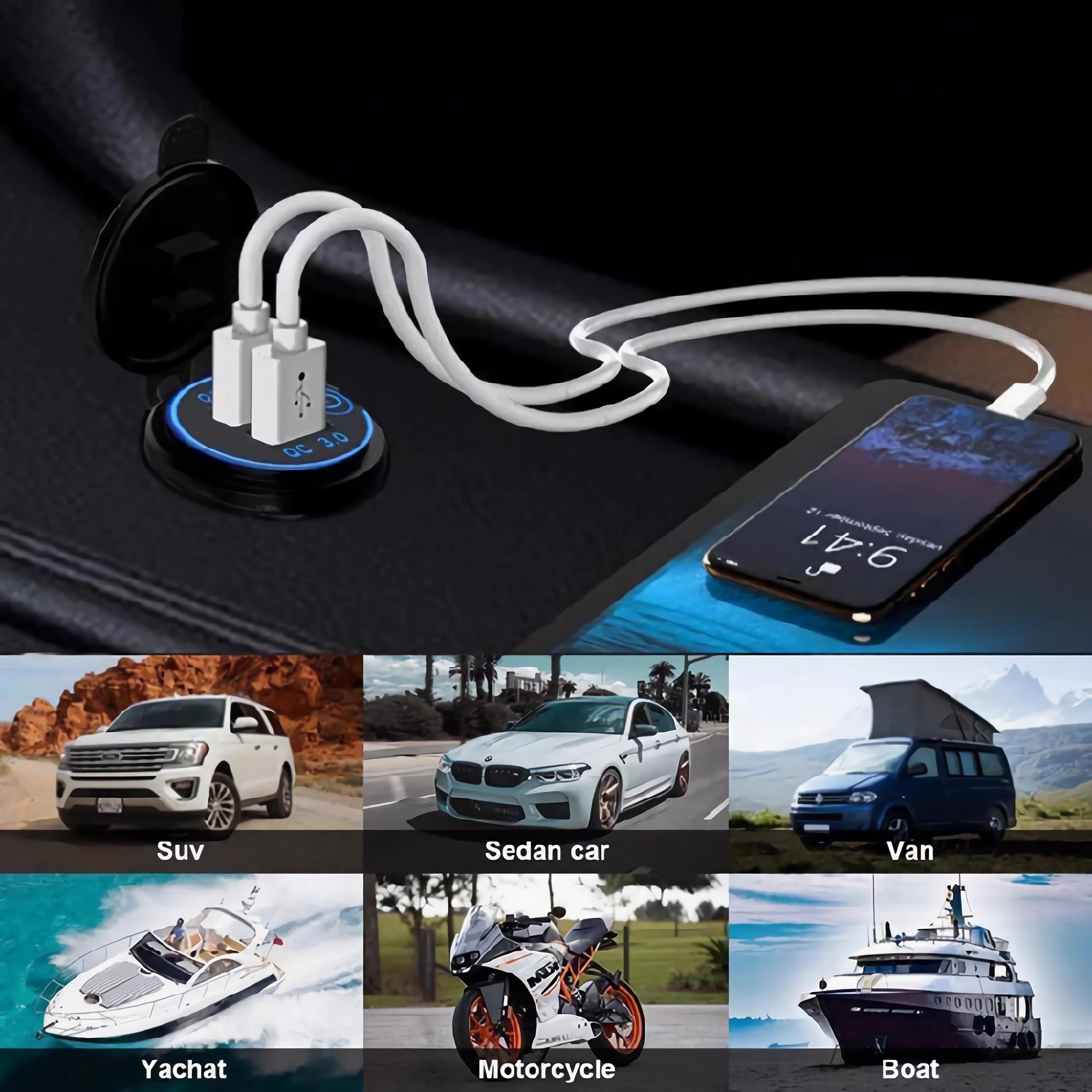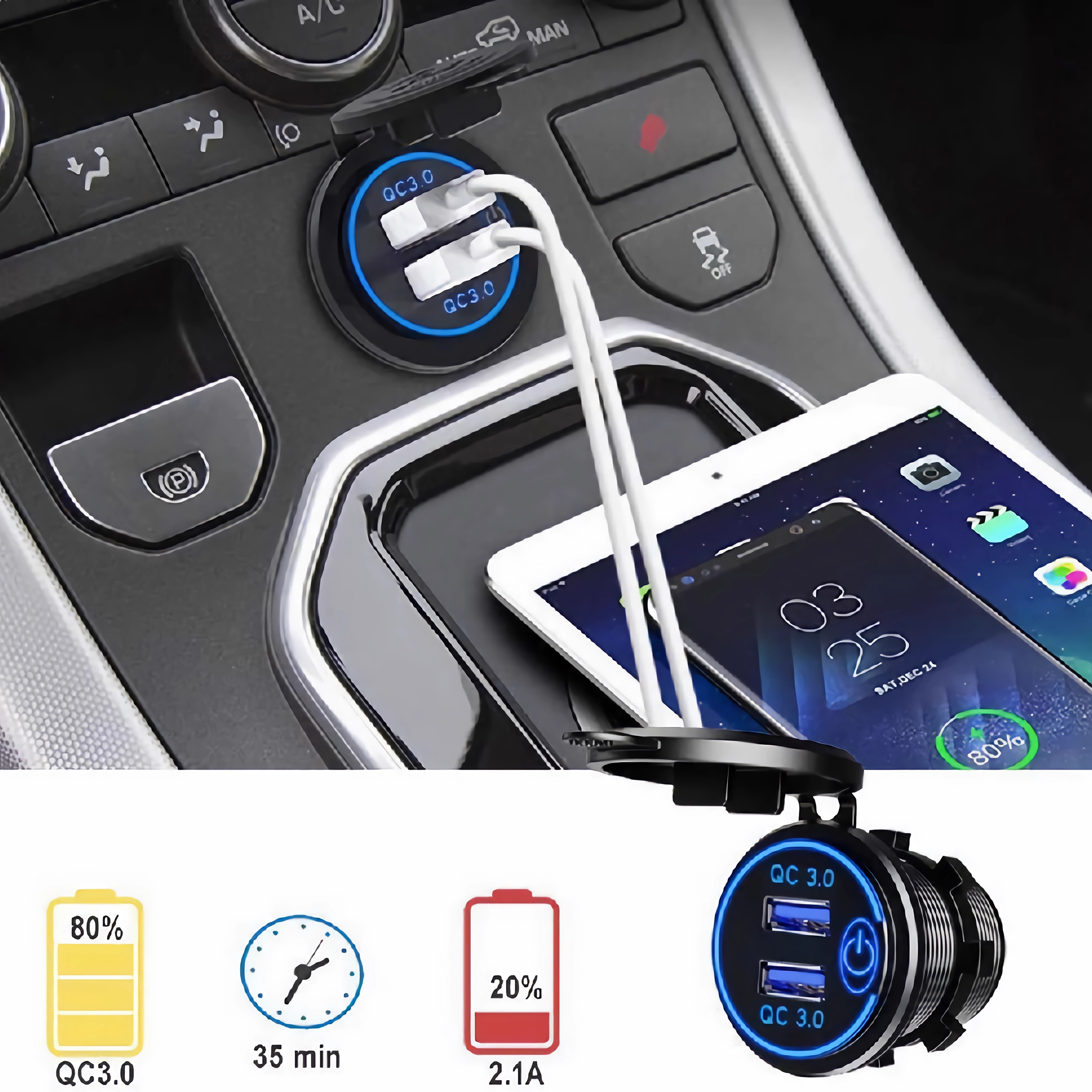 Unser Dual USB QC3.0 Schnelles Ladegerät mit Schalter ist mit einer sehr zuverlässigen Reihe von 12-24-V-Steckdosen / -Steckdosen.