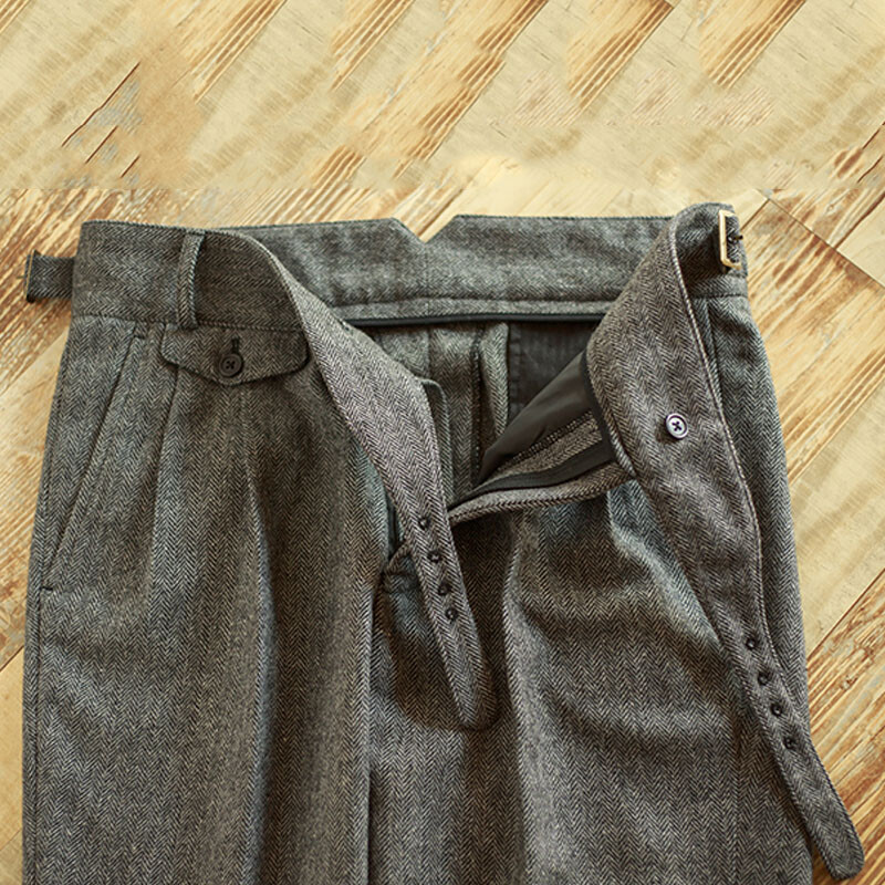| Men Wool Blend Herringbone Pants Retro Tweed Straight Leg Dress Casual Trousers |