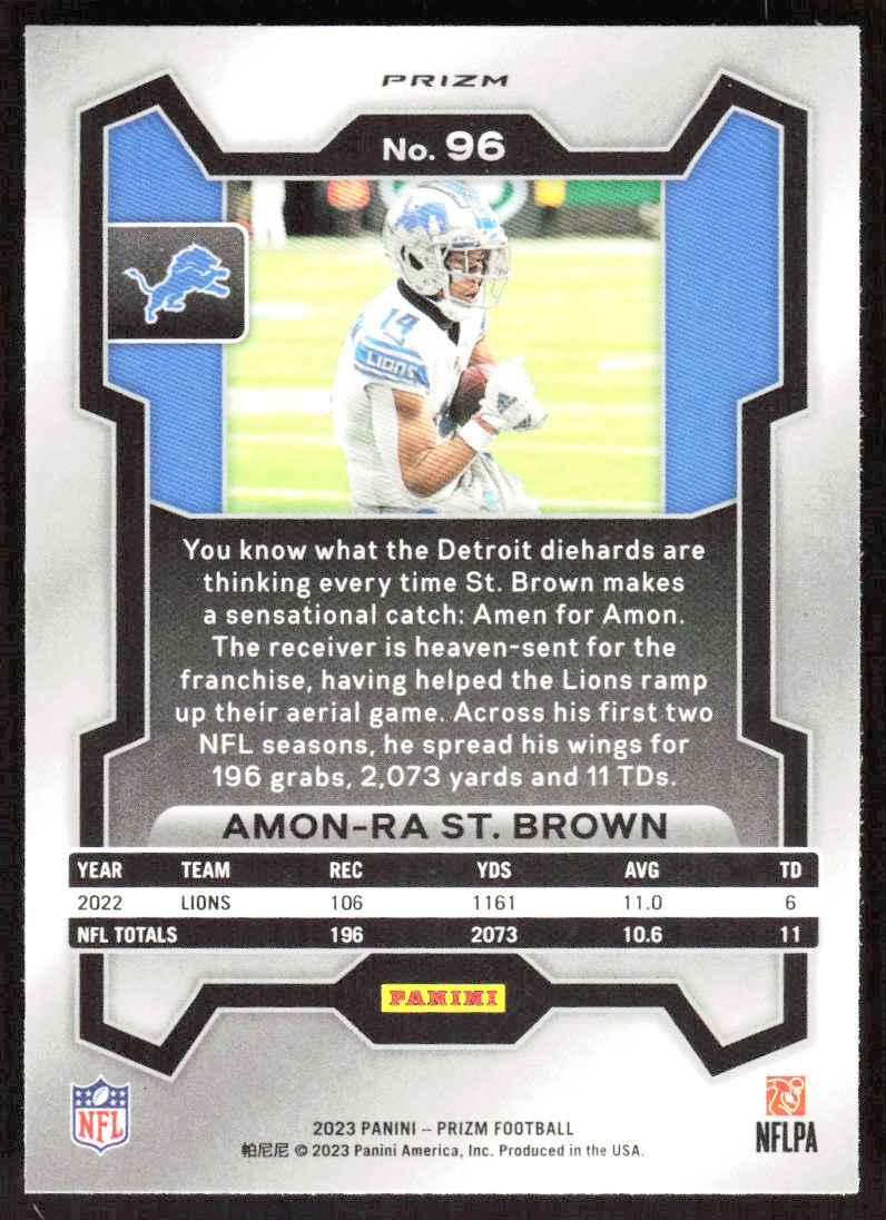 2023 2853B Panini Prizm Green WAVE PRIZM Amon-Ra St. Brown Detroit Lions #96
