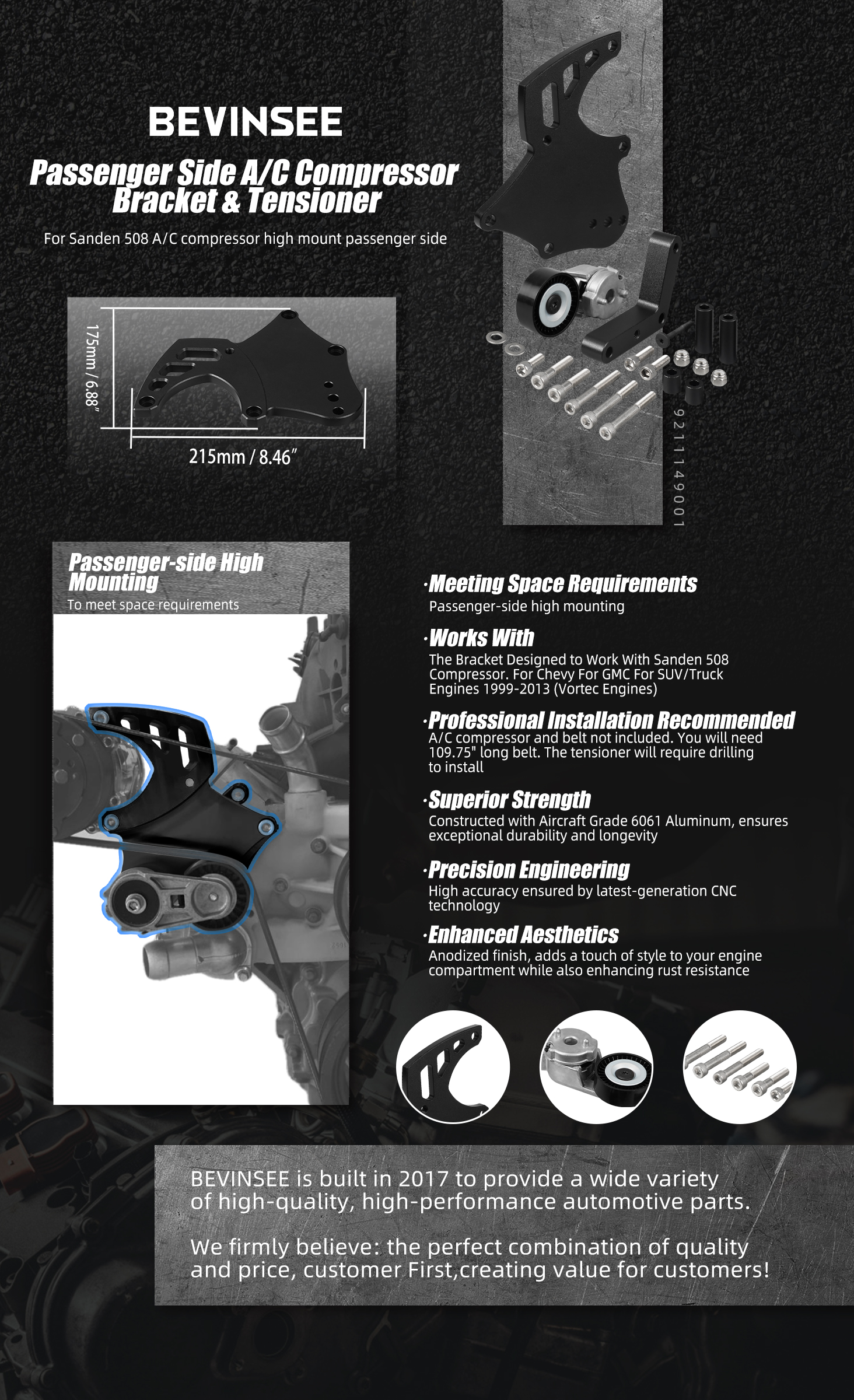 Disclaimer: BEVINSEE parts are not sponsored or endorsed by, or affiliated with the brands its parts fit, including Porsche, Subaru, Jaguar, BMW, Isuzu, Chrysler, Dodge, Jeep, Buick, Cadillac, Chevrolet, GMC, Volvo, Land Rover, Oldsmobile, Pontiac, Ford, Lincoln, Mercury, Acura, KIA, Nissan, Infiniti, International Harvester, Mitsubishi, Audi, Lexus, Toyota, Mazda, Volkswagen, Suzuki, Saab, Honda, Alfa Romeo, Saleen, Mercedes-Benz, Nash, Hummer, Freightliner, Datsun, Saturn, Turner, Geo, Lada, Fiat, Daihatsu, Opel, Vauxhall, Sabra, Tesla, Ram, Rover, Skoda, Healey, Mini, Smart, Scion, Renault, Seat, Peugeot, Merkur, Astra, Tucker, VW, Routan, Tiguan, Touareg, Jetta, Gti, Passat, Golf, Bosch, Denso, Holden, Chery, Mercedes Benz, Holden Special Vehicles, Hyundai, Trabant, Citro?n etc.