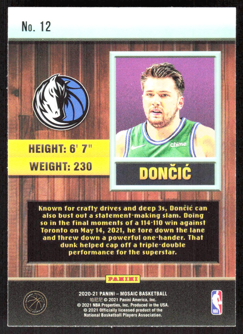 2021-22 5214B MOSAIC JAM MASTERS Luka Doncic Dallas Mavericks #12