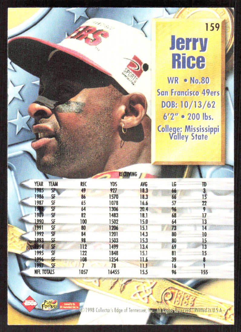 1998 6040B Collector's Edge Supreme Season Review Jerry Rice San Francisco 49ers