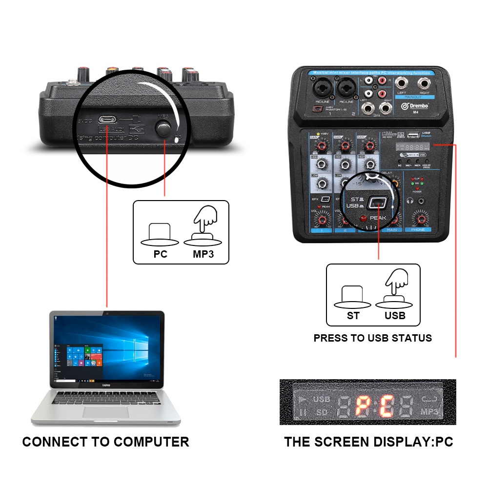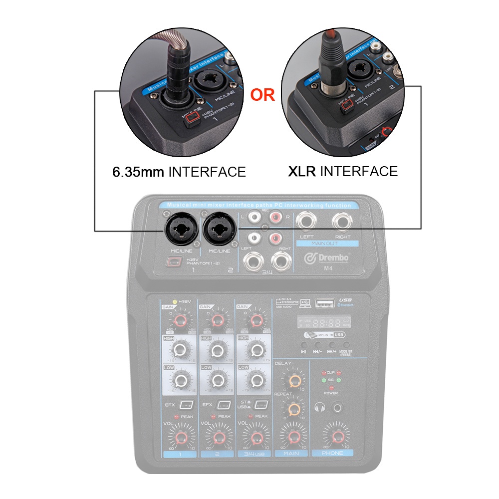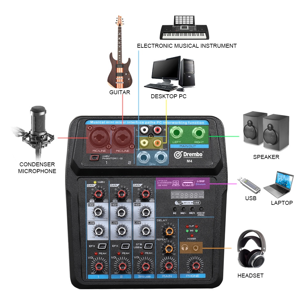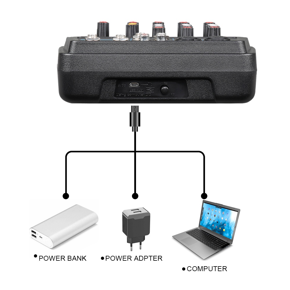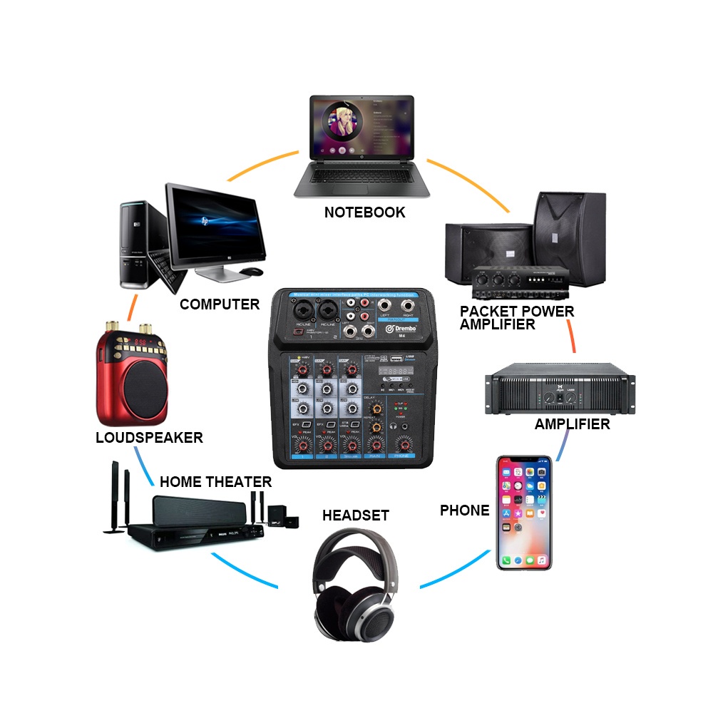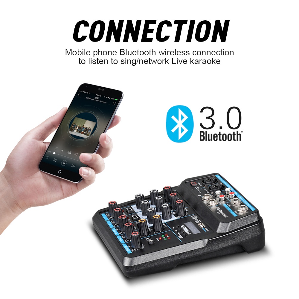 The mixer audio is a multi-purpose 4-channel mixer with a sound card that can be meet users of home music recording, webcast, Singing, small party, and other needs.