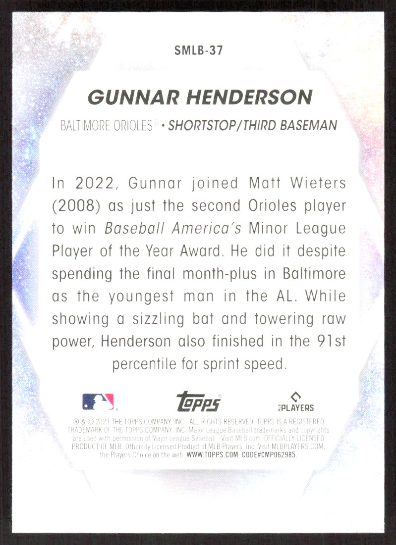 2023 6332B Topps Stars of MLB Gunnar Henderson Rookie Baltimore Orioles #SMLB-37