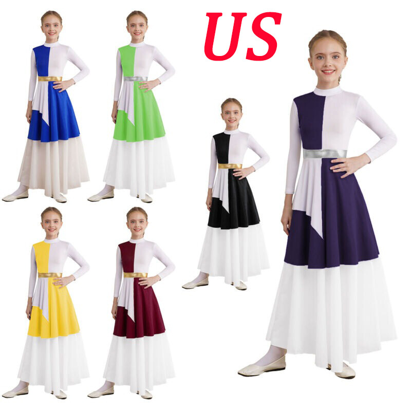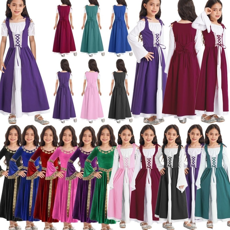 US Girls Kid Renaissance Medieval Princess Gown Maxi Dress Cosplay Party Costume