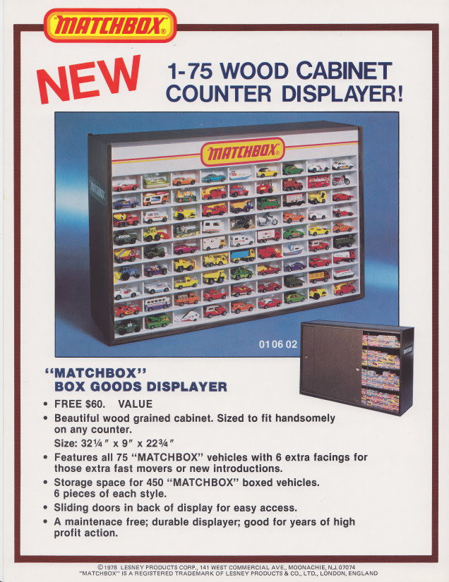 Matchbox / Lesney USA Werbeblatt für das "Holz/Wood" Display 1978