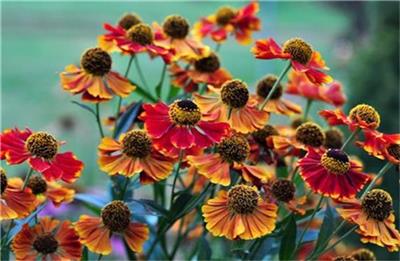 Helenium hardy perennials are well worth growing from seed. The gorgeous large daisy-like flowers of Autumnale Red & Gold are really striking. The large flower heads are fiery shades of red, orange and gold and they are such lovely, warm colours! The flowers have a prominent, dome shaped, raised centres. The tall flowers will make a wonderful splash of colour in your borders and very large pots, amongst your other plants. The flowers are long lasting and are great for cut flower arrangements. Helenium are clump forming perennials and should survive a normal UK winter and come back bigger and better the following year. When established the plants grow quickly and will be smothered in the gorgeous cheery blooms from July through to September/October. Just remember to remove dead flower heads to encourage repeat flowering. The flowers are very attractive to bees and butterflies. For the best display we recommend that you plant out in groups of three. Helenium plants will be happy in a sunny position, preferably. As they are clump forming, clumps can be split if they are getting too large, after 2 or 3 years. Helenium are very versatile plants and iwill grow almost anywhere, even in quite dry soil when established, but new plants will grow better in moist soil. The plants will become bushy with a mature height of approx 90-120cm and mature spread of 45cm. The pictures may show mature plants for illustration only (seeds only are supplied).