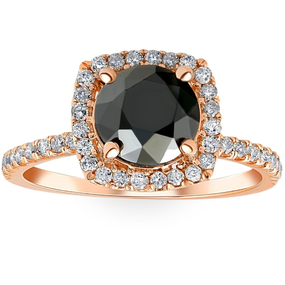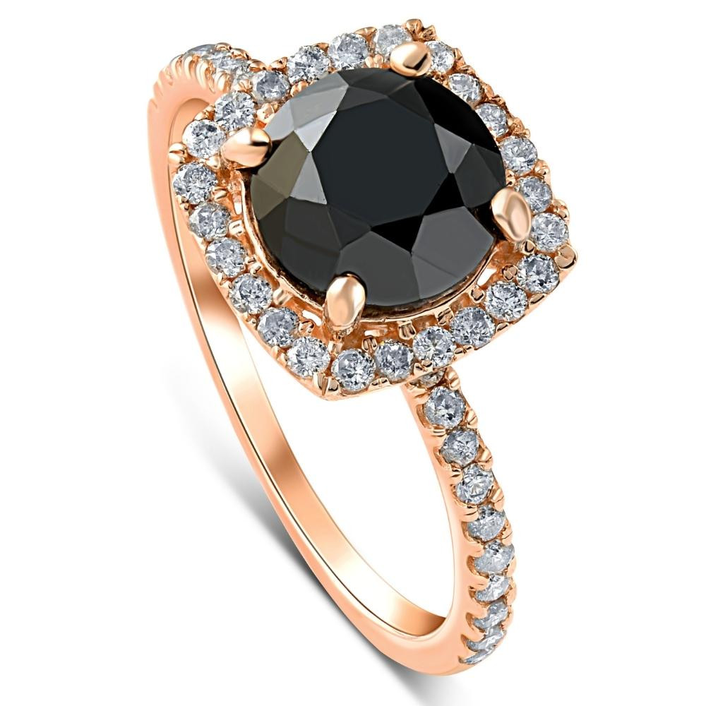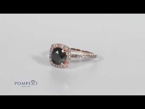 This high quality women's ring features a 2 ct black center diamond and round cut diamonds. All diamonds are set in solid 14k rose gold.