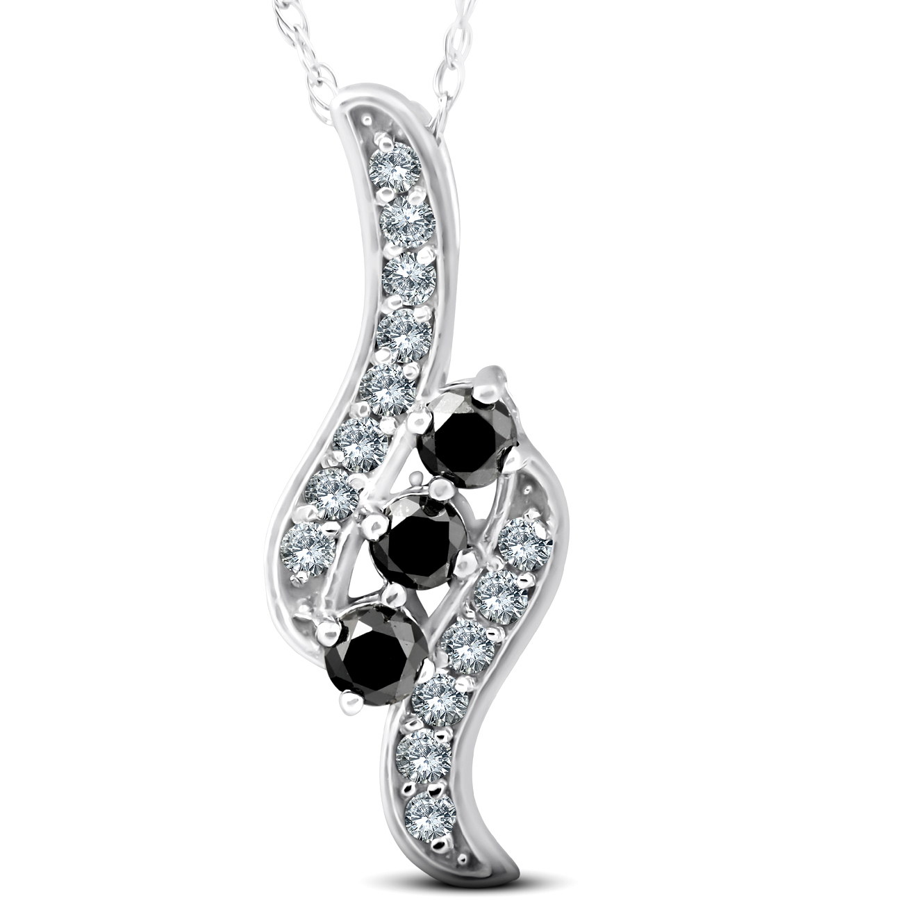 1/3Ct Treated Black & White Diamond 3-Stone Pendent 14K White Gold