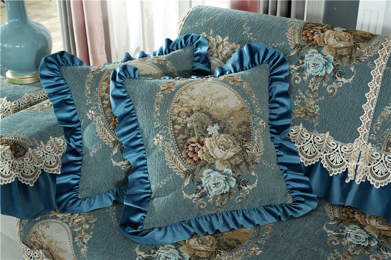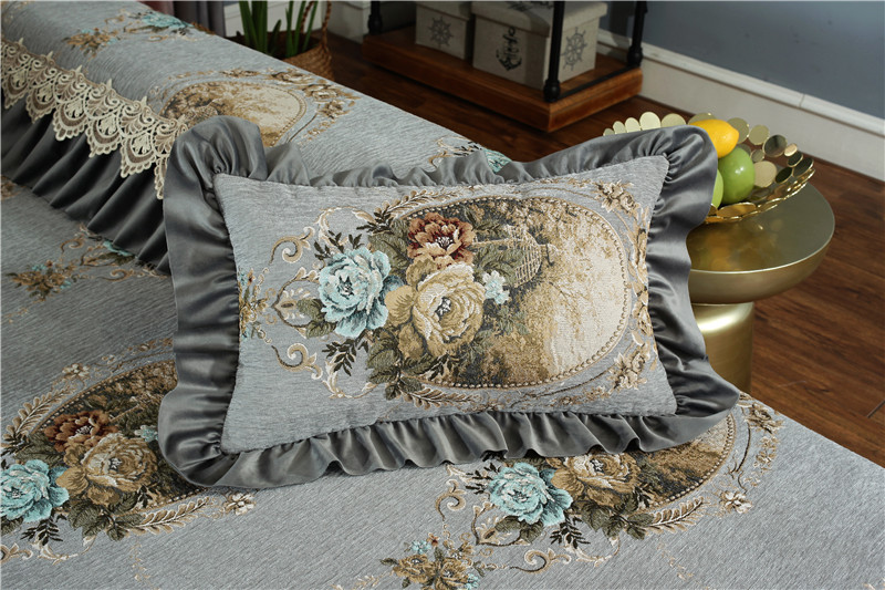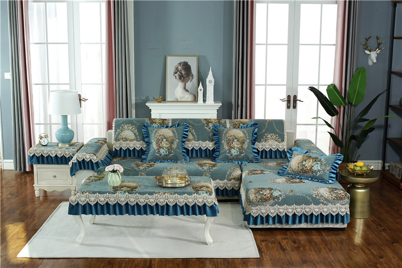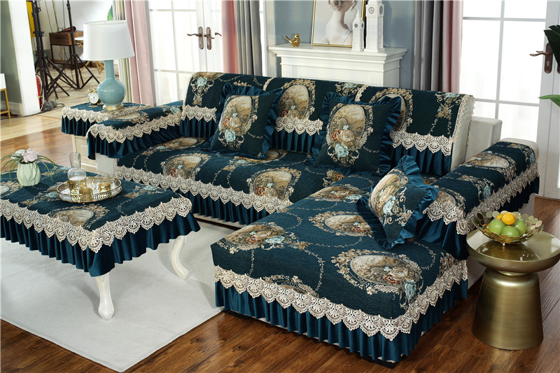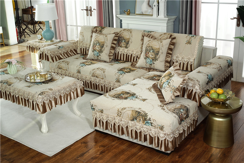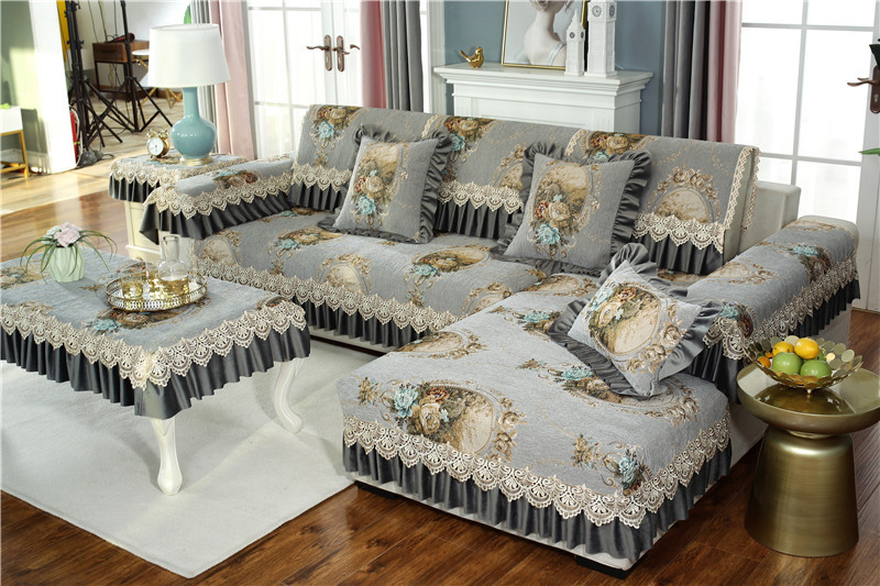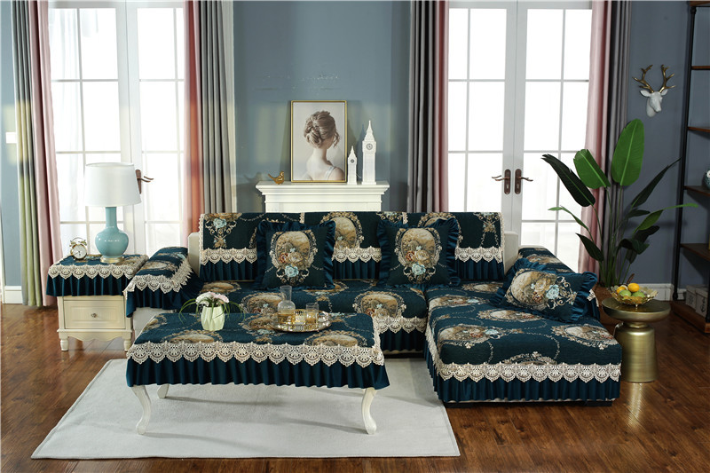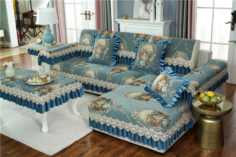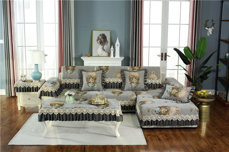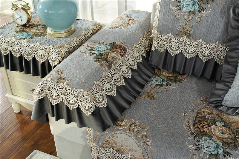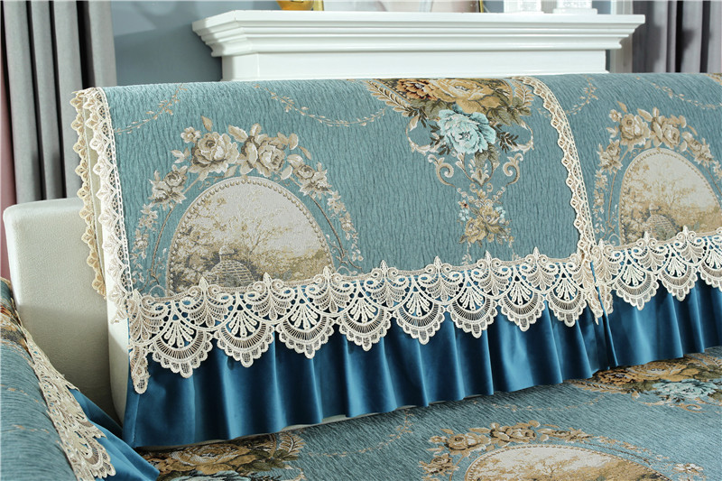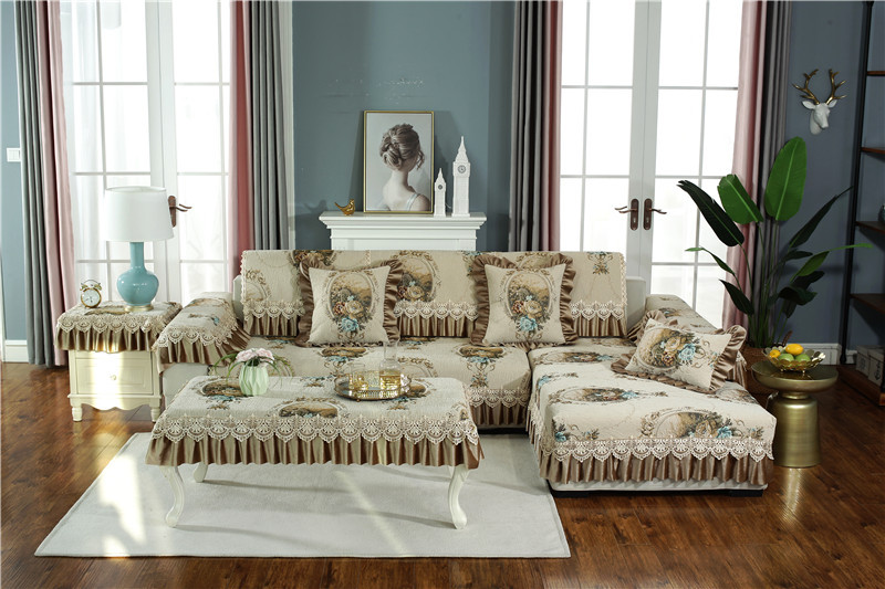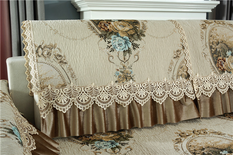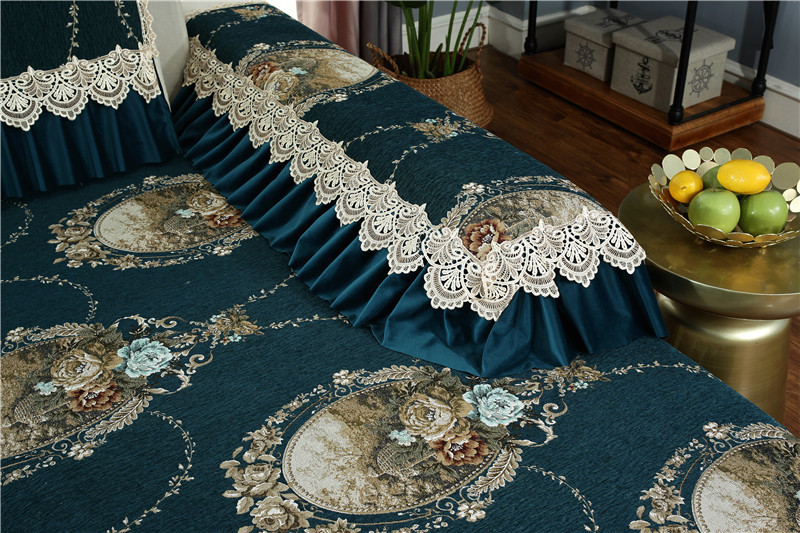 European Style Embroidered Lace Sofa Cover with Anti Slip All Season Use