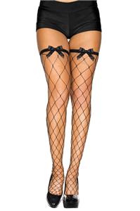 - Description: Large diamond net thigh high stockings feature thin banded tops and mini bow accents. Bottoms not included.