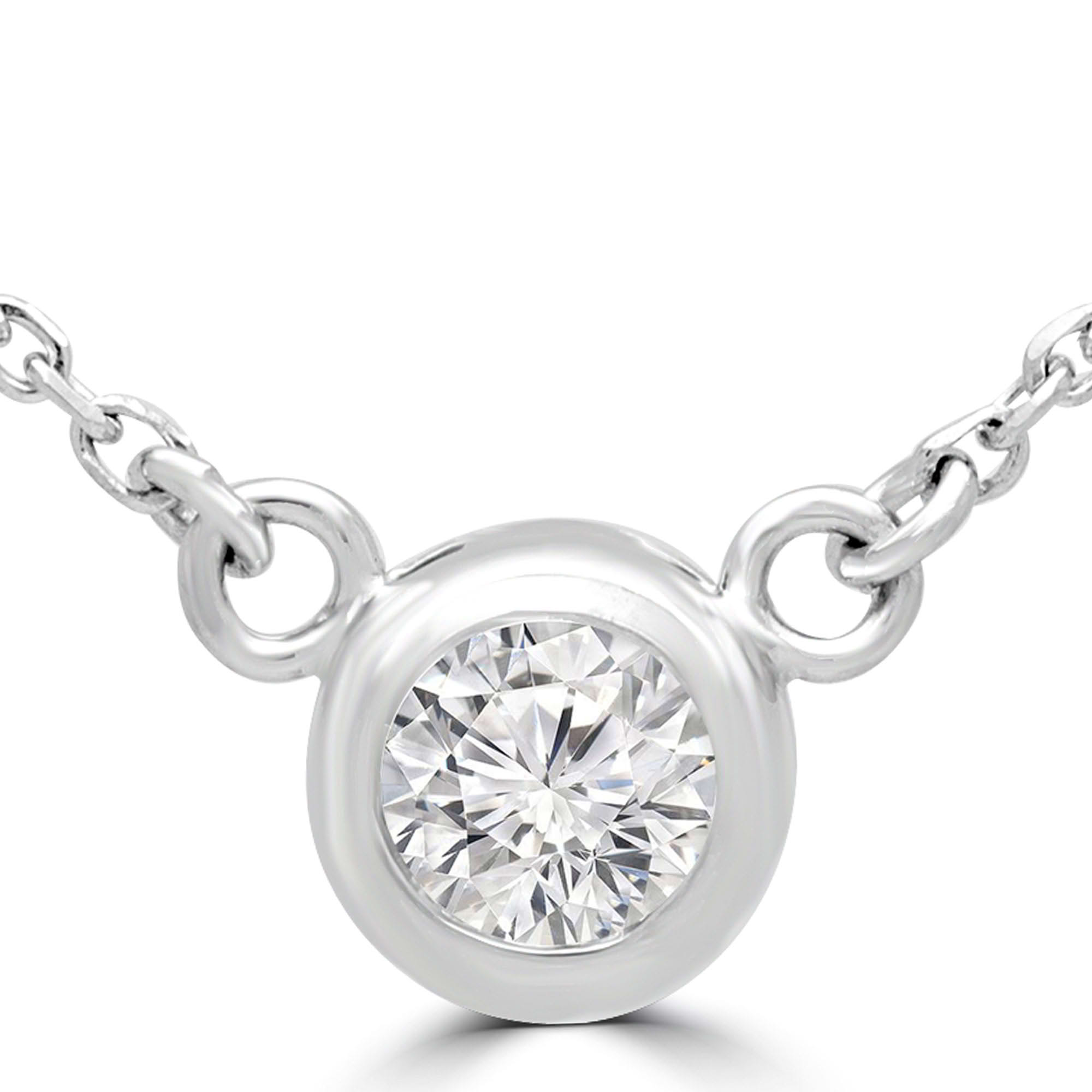 0.25 CT Round VS1 F Diamond Bezel Set Necklace 14K White Gold