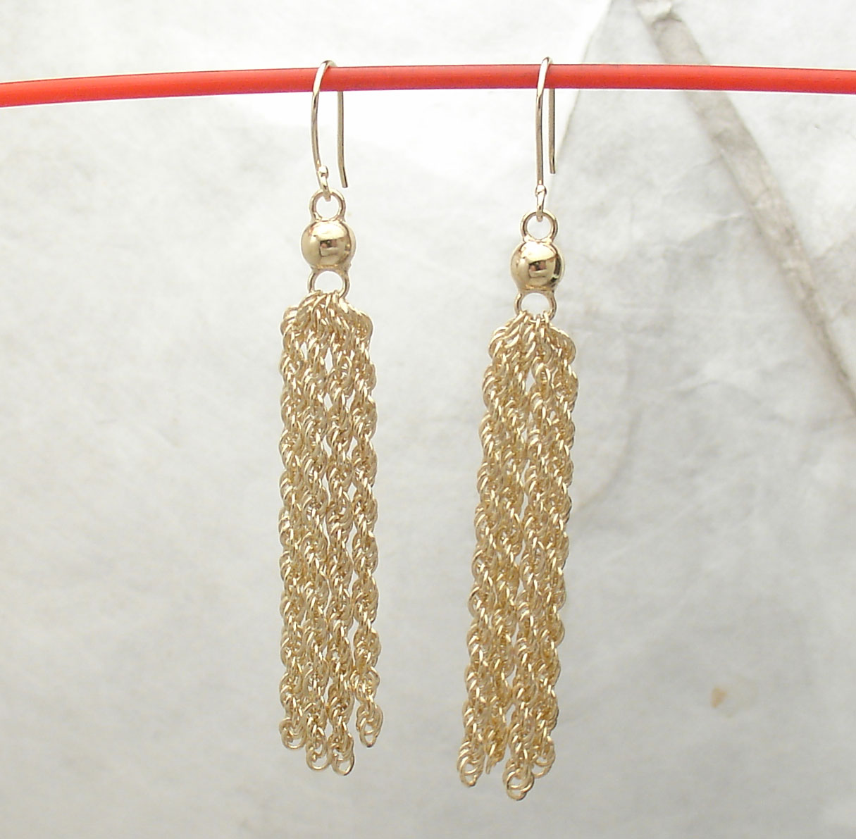 Premiere your new style savvy look. These rope chain tassel dangles add a dose of drama to your otherwise classic attire. So put away your everyday studs and go bolder for an award-winning performance.