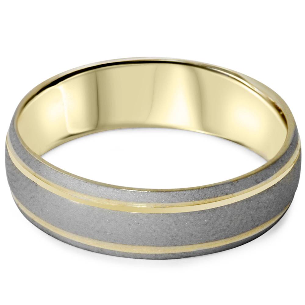 Mens 6mm 14K White & Yellow Gold Two Tone Brushed Wedding Band