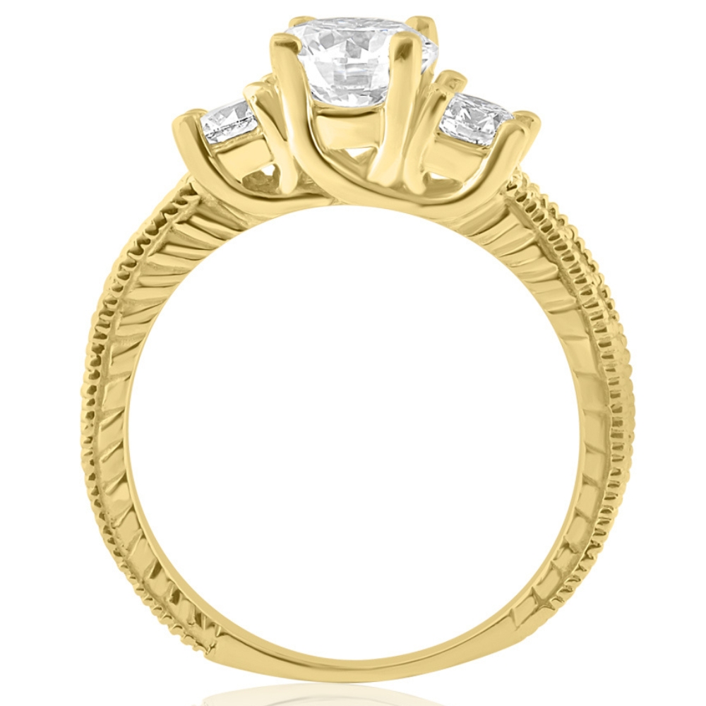 1.80Ct Three Stone Diamond Engagement Ring Accents 14k Yellow Gold
